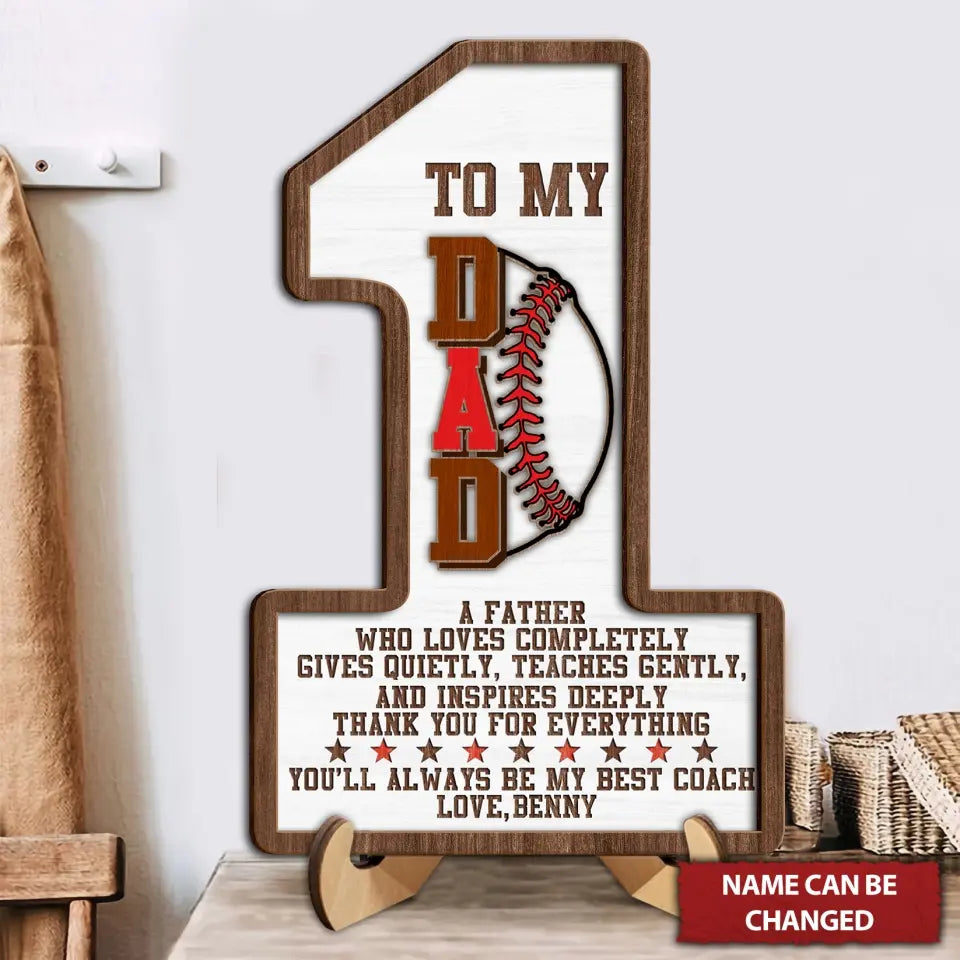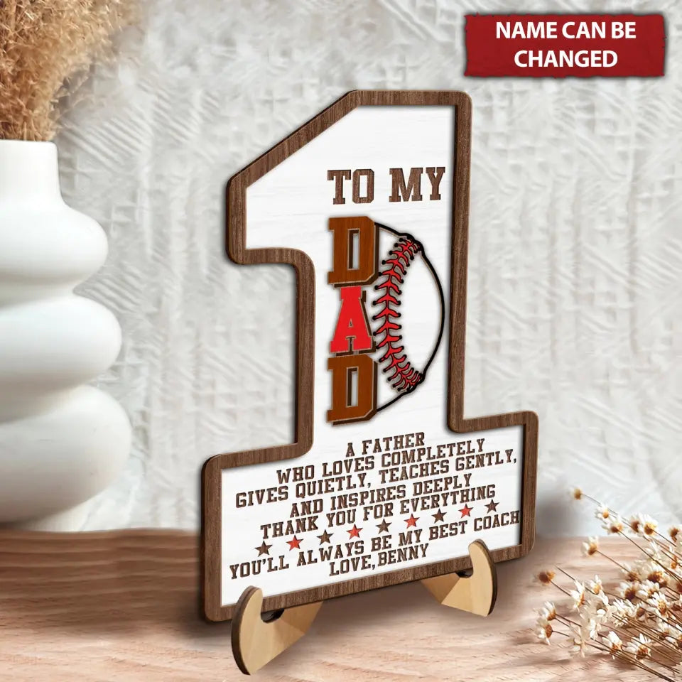 To My Dad Personalized 2 Layered Wooden Sign, Gifts For Dad, Baseball Lovers Gifts