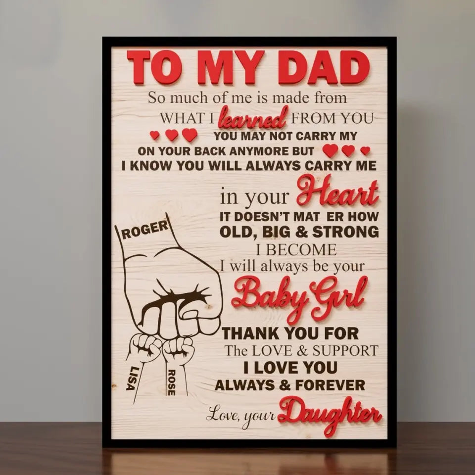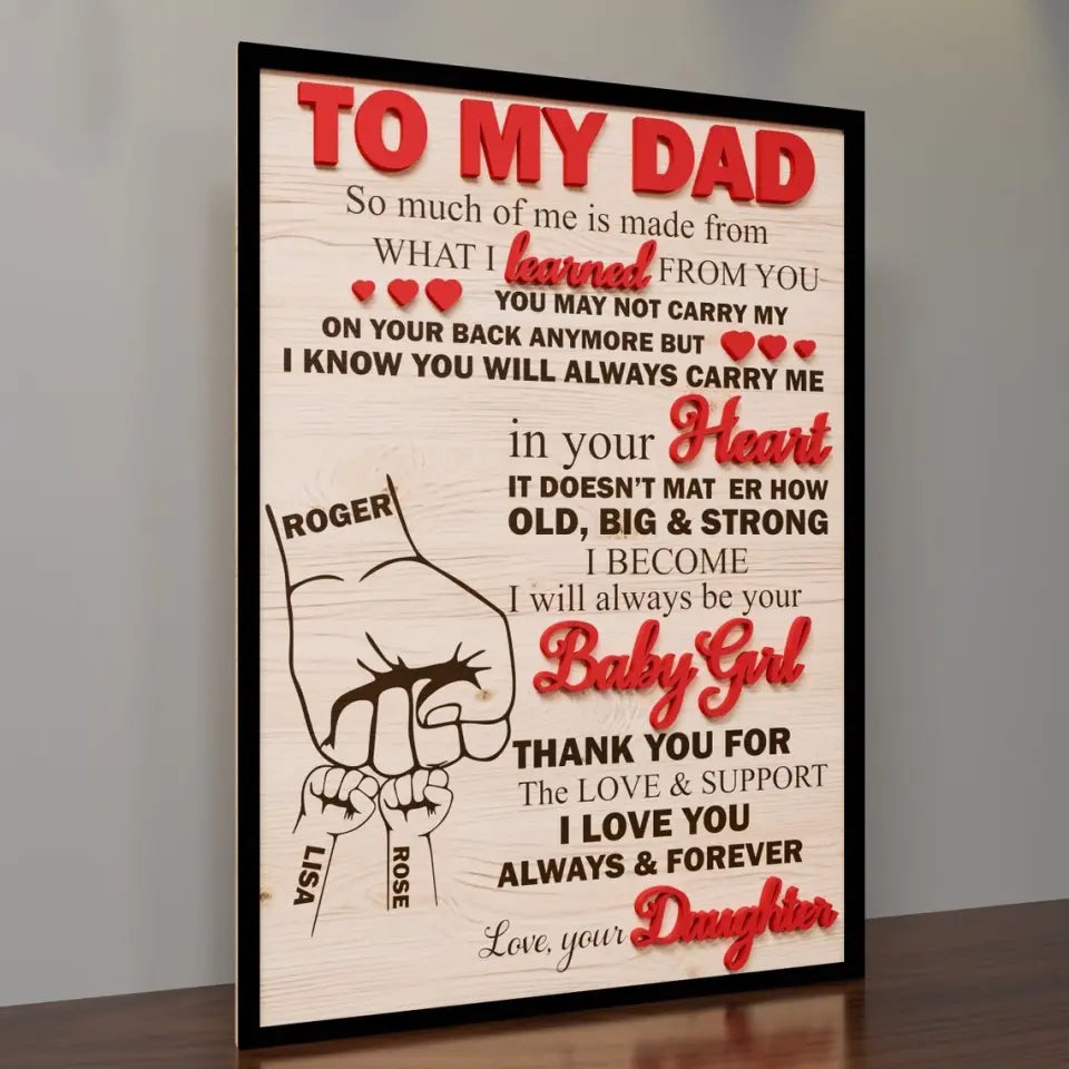 To My Dad Personalized 2 Layered Wooden Sign, Gifts For Dad, Gifts From Daughter