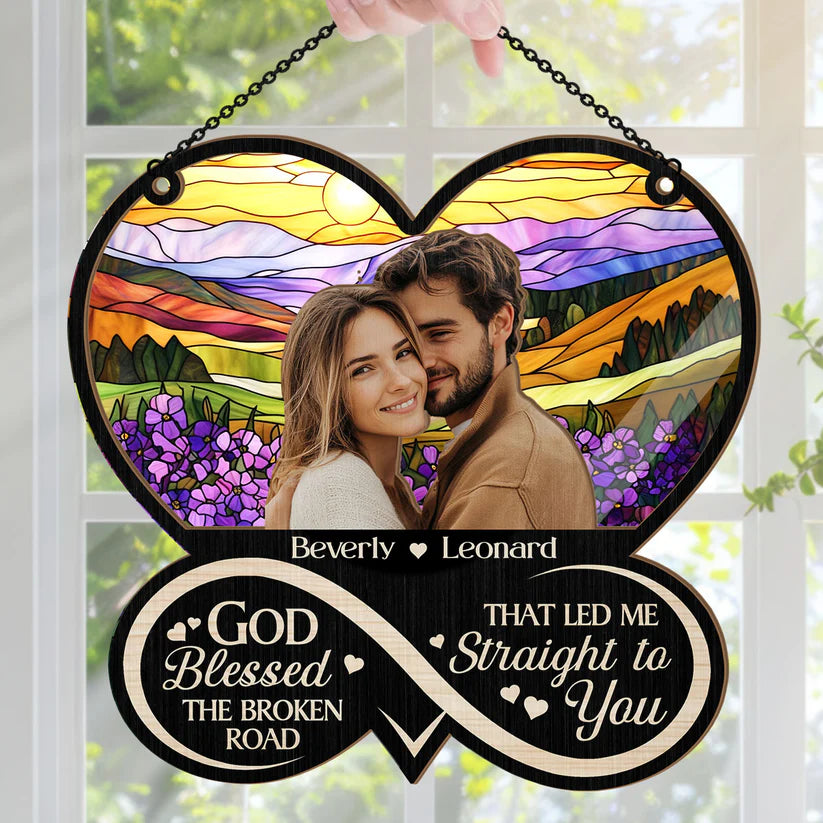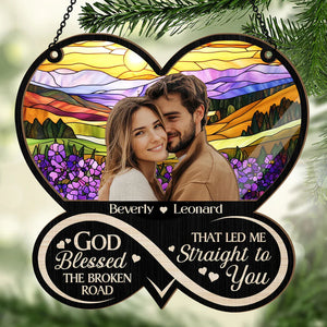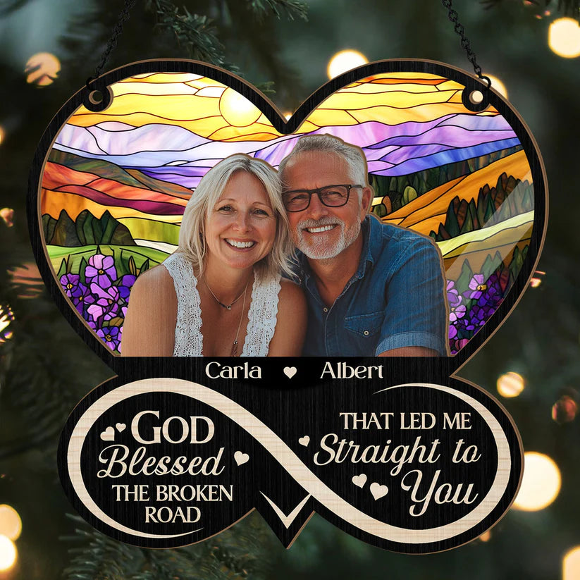 God Blessed The Broken Road That Led Me Straight To You Personalized Suncatcher Ornament, Personalized Christmas Ornaments