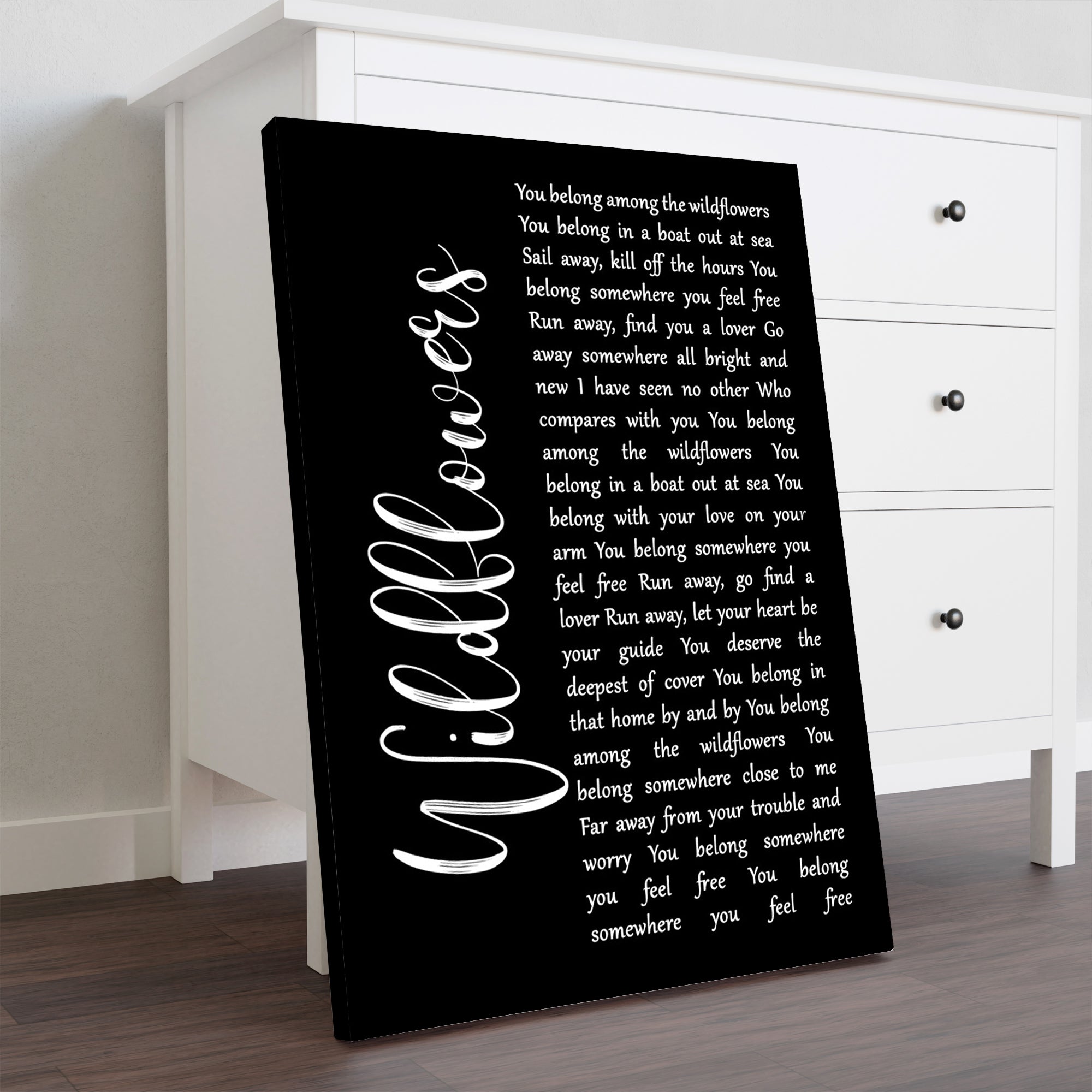 Tom Petty Wildflowers Black Script Song Lyric Music Art Print Personalised Lyrics Poster Wrapped Canvas Frame Gift Wall Art Custom Print