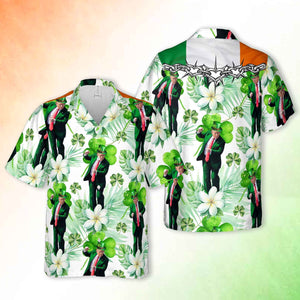 Bring some luck and laughter to your wardrobe this St. Patrick's Day with the Trump Dancing Shamrock Hawaiian Shirt—a must-have for anyone looking to stand out and have fun!