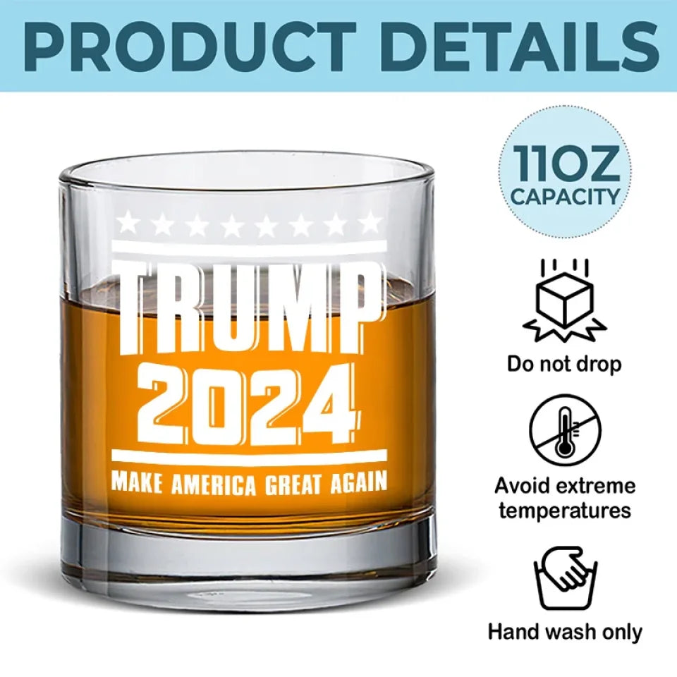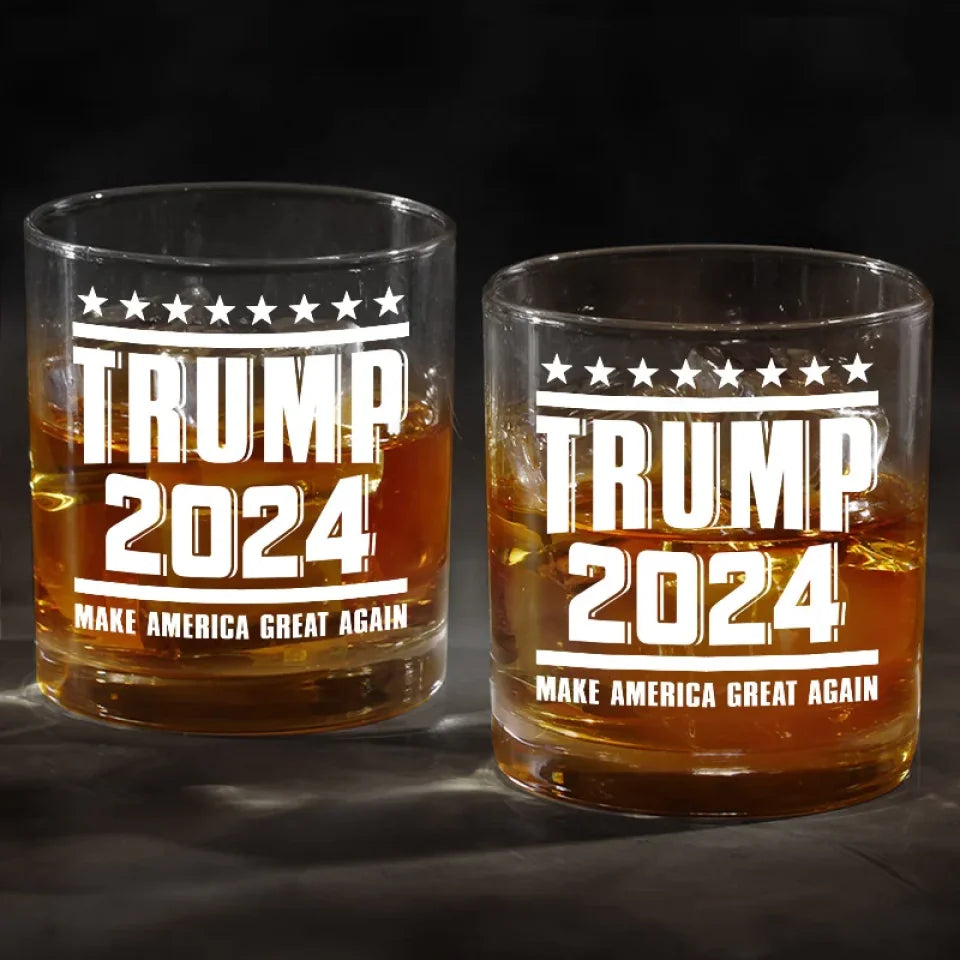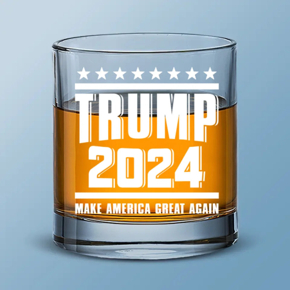 Trump Flag 2024 Making America Great Again Whiskey Glass, Old Fashioned Glass, Patriotic Gifts