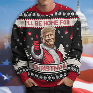 Trump I'll Be Home For Christmas Trump2024 Christmas Ugly Sweaters, Funny Political Shirt
