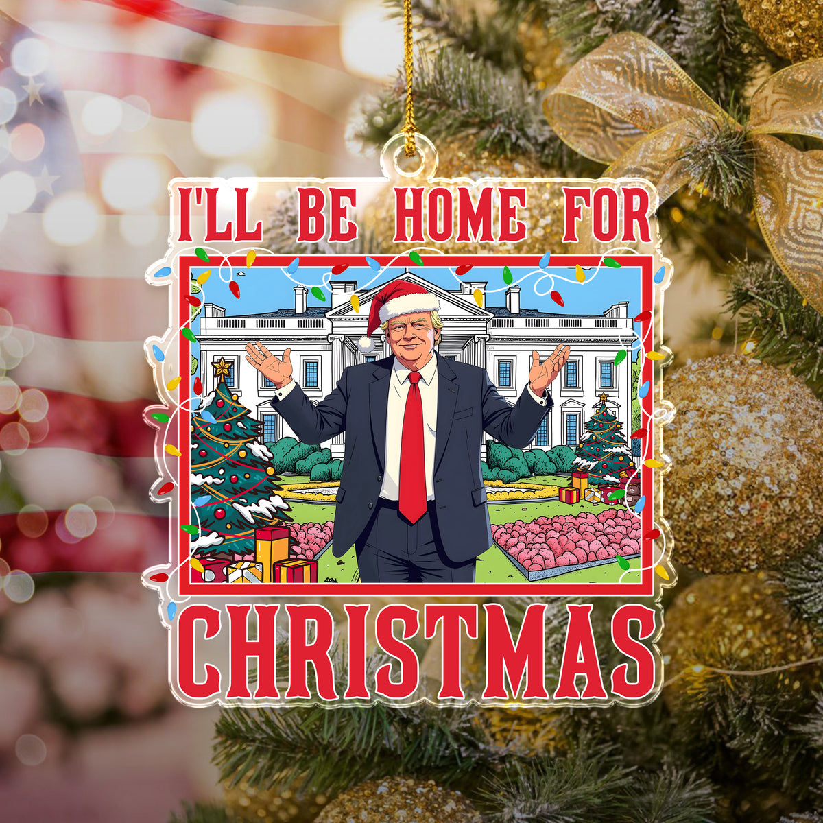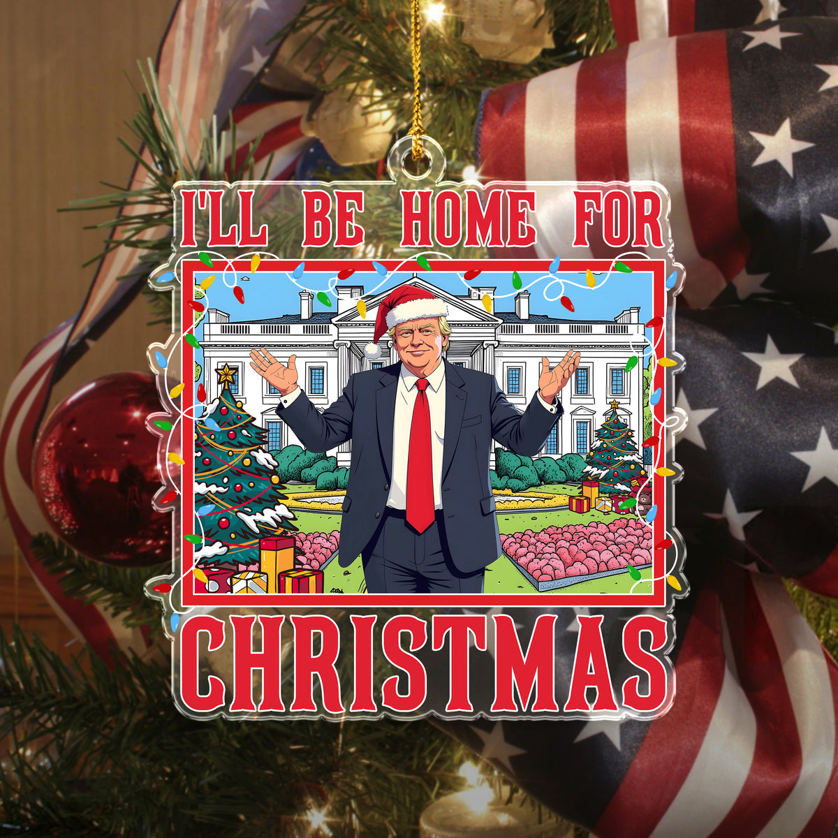 Trump Santa Hat I'll Be Home for Christmas, Trump2024 Christmas Acrylic Ornament, Gift For Trump Supporter