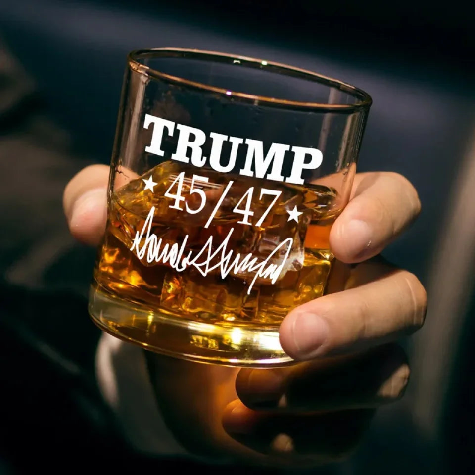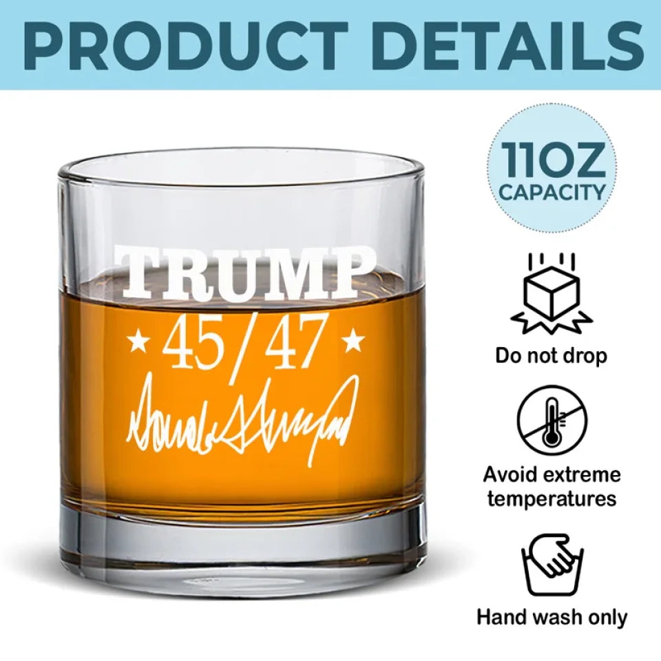 Trump2024 45 47 Whiskey Glass, 47th US President Printed Wine Glass, Presents For Dad