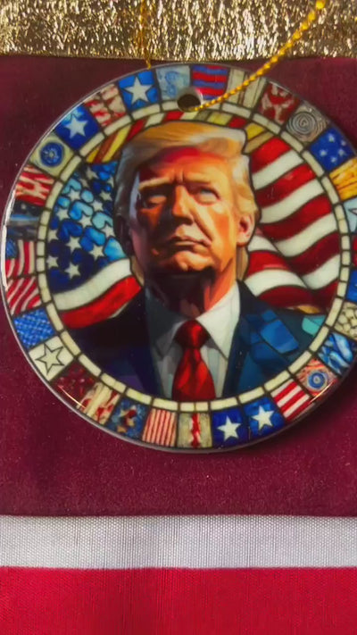 Trump2024 47th President Stained Glass-Style Suncatcher, Political Christmas Ornament