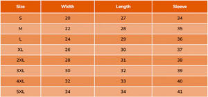 | Size | Chest (Front Only) | Body Length | Sleeve Length |