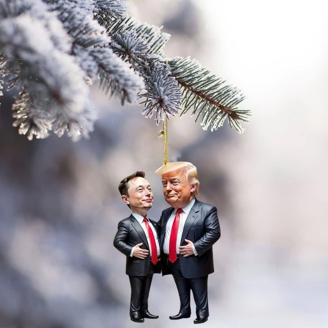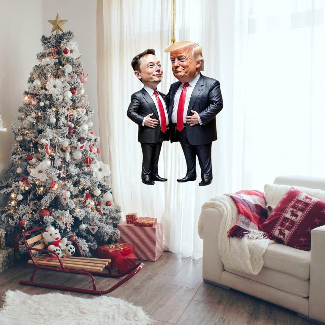 Trump2024 And Elon Musk Ornament, Funny Political Christmas Acrylic Ornament, Christmas Decor