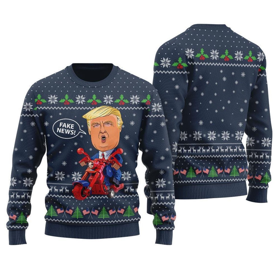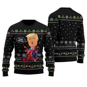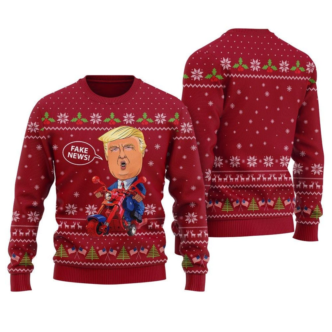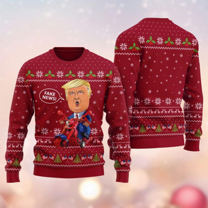 Trump2024 Fake News Funny Christmas Shirts, Political Ugly Christmas Sweater