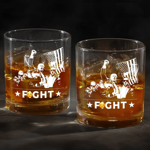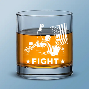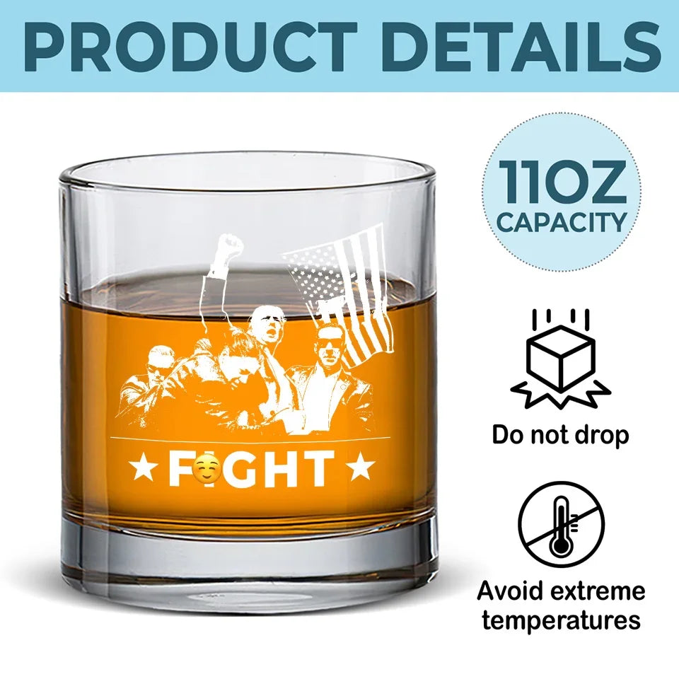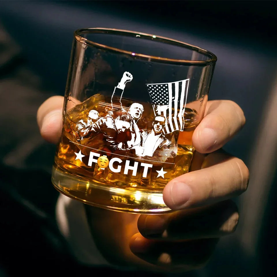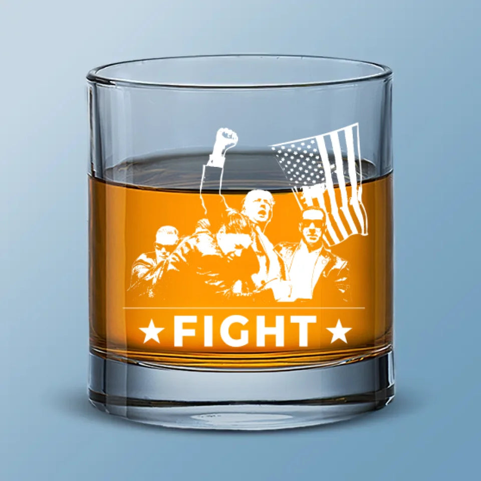 Trump2024 Fight Fight Fight Whiskey Glass, Double Old Fashioned Glass, Cool Christmas Gifts For Dad