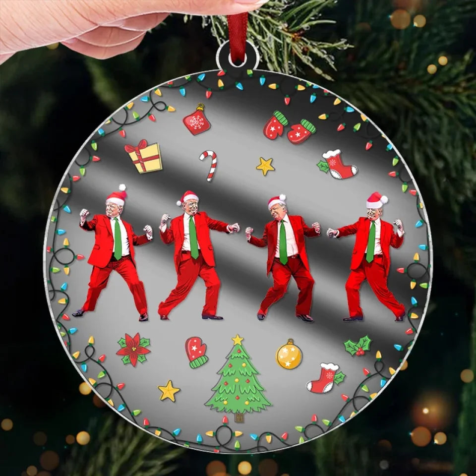 Trump2024 Funny Dancing Acrylic Ornament, Trump MAGA Christmas Ornament, Christmas Gift