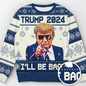 Trump2024 I'll Be Back Funny Christmas Shirts, Political Ugly Christmas Sweater