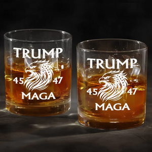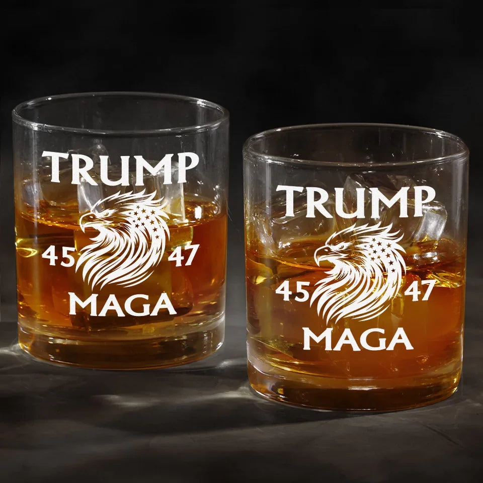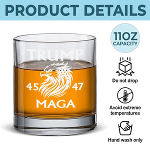 Trump2024 President 45 47 Whiskey Glass, MAGA2024 Old Fashioned Glass, Cool Christmas Gifts For Dad