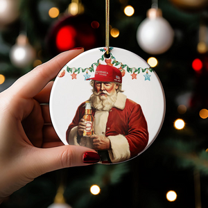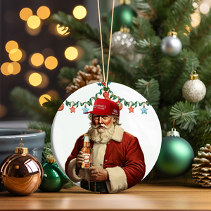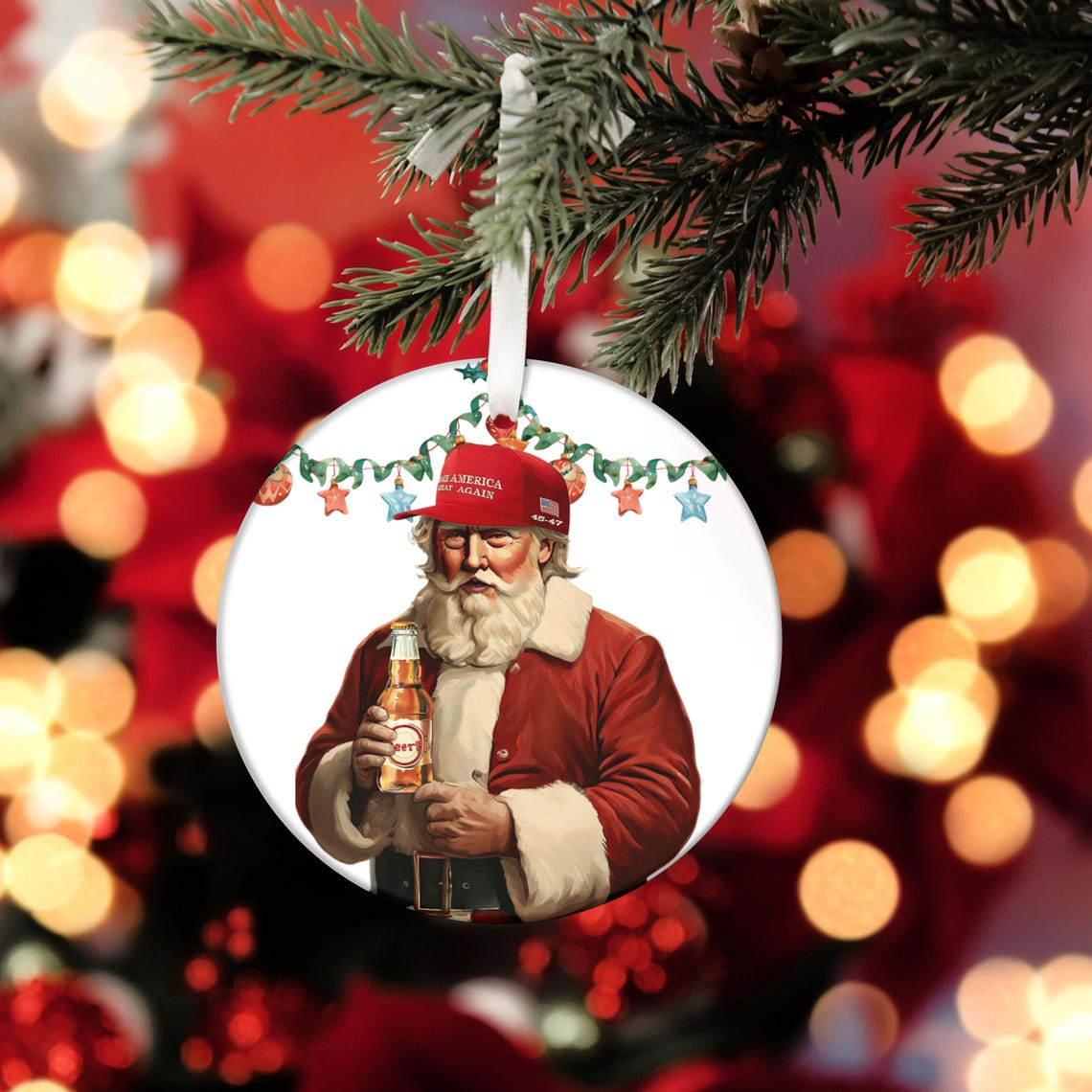 MAGA2024 Santa Make America Great Ceramic Ornament, Funny Trump Beer Ornament