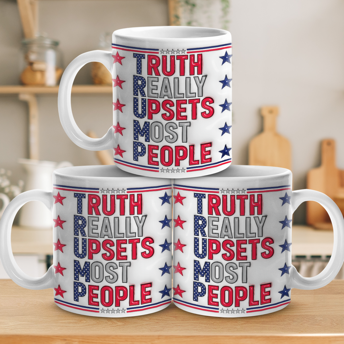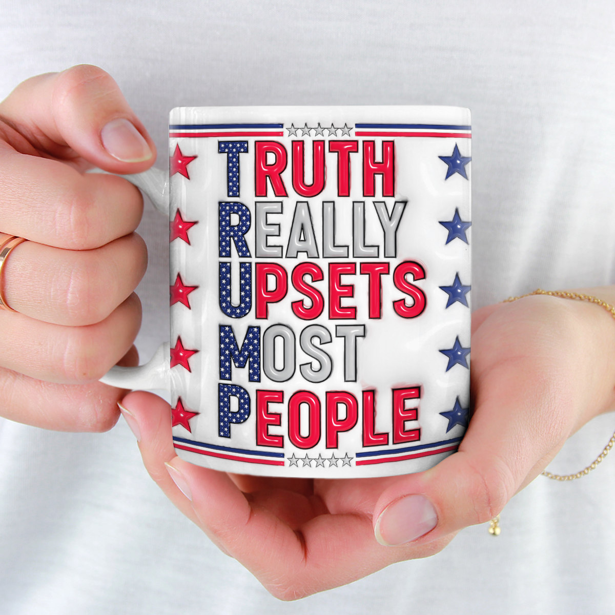 Trump2024 Truth Really Upsets Most People 3D Inflated Effect Printed Mug – A Bold Political Statement for Your Morning Brew!