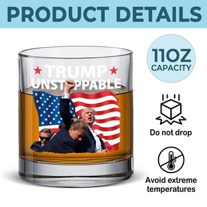 Trump2024 Unstoppable, US Election Whiskey Glass, Glass Stemware