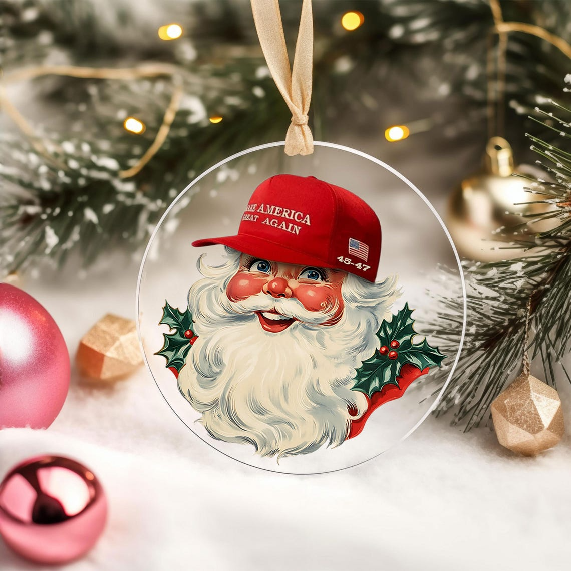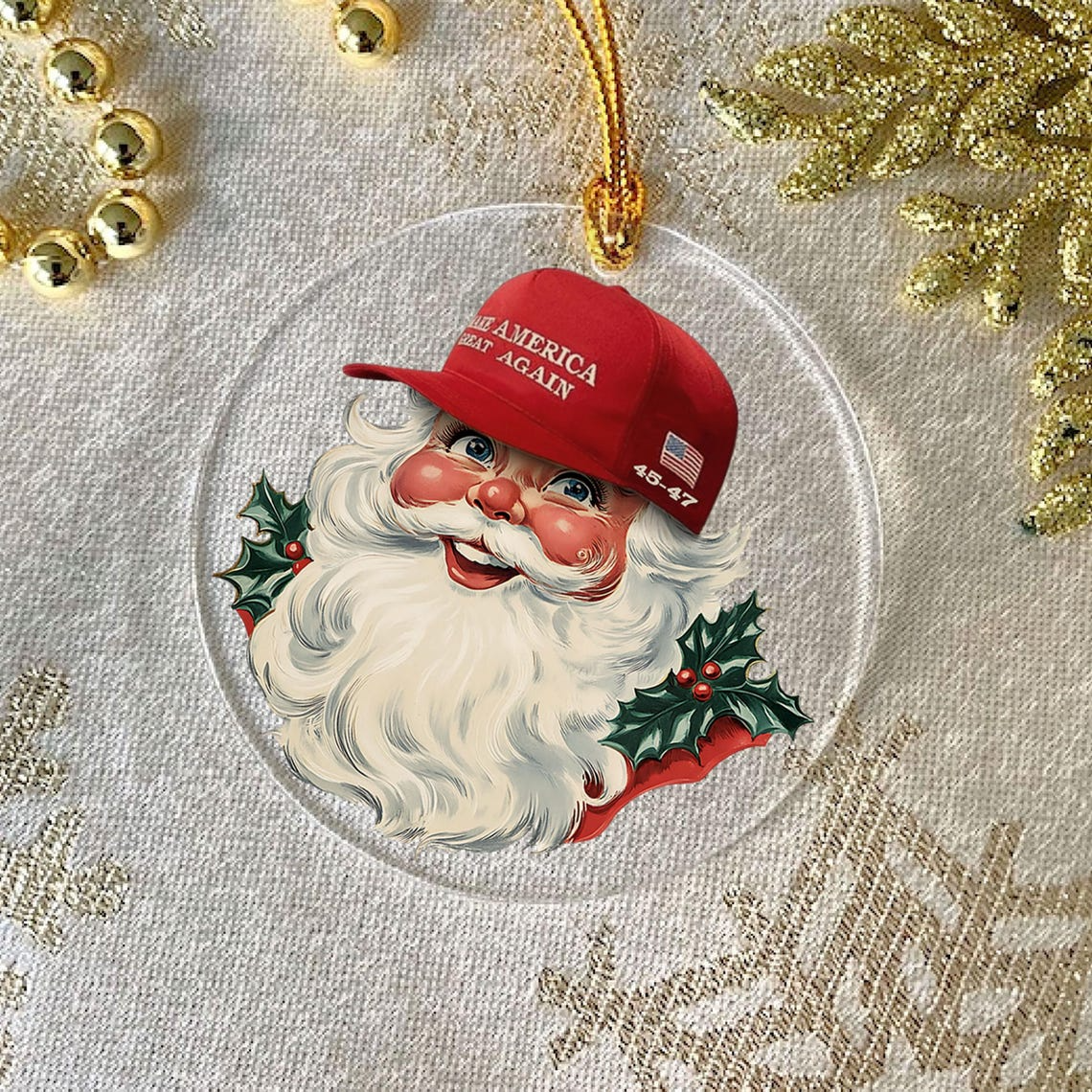 Trump2024 Vintage Santa Claus Ornament - Funny Christmas Acrylic Ornament
