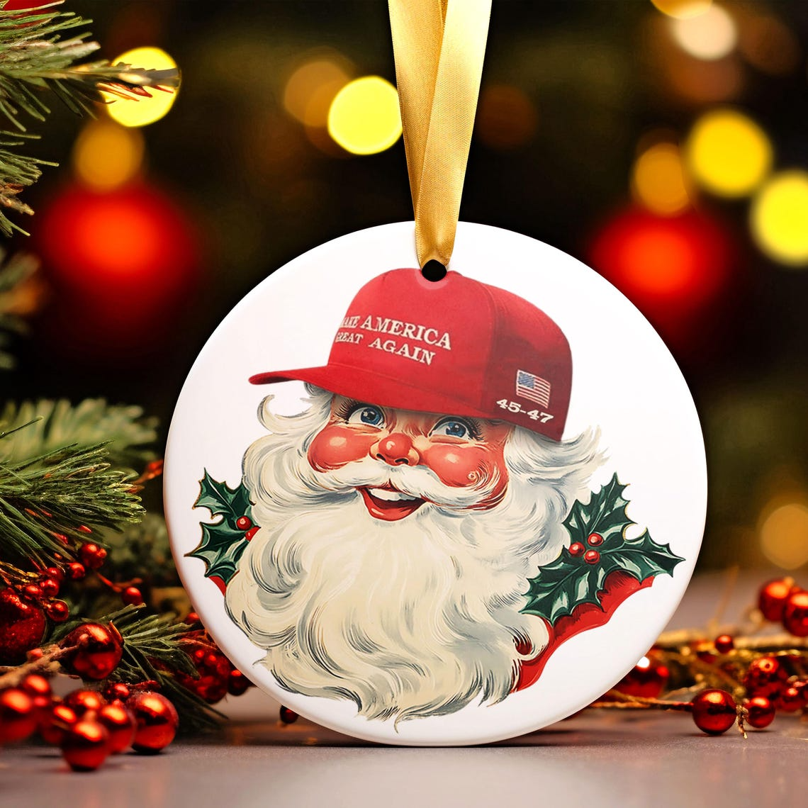 Trump2024 Vintage Santa Claus Ornament - Funny Christmas Ceramic Ornament