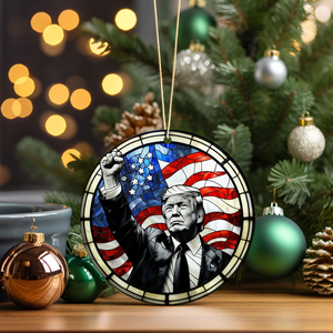 Celebrate the holidays with a powerful statement and a touch of political flair with the Trump2024 With Raised Fist Ceramic Ornament! Featuring a bold design of the Trump2024 message paired with a raised fist symbol, this ornament combines patriotism with strength and determination. Perfect for Trump supporters and political enthusiasts, this ornament adds a unique and memorable touch to your Christmas tree or holiday decor.