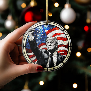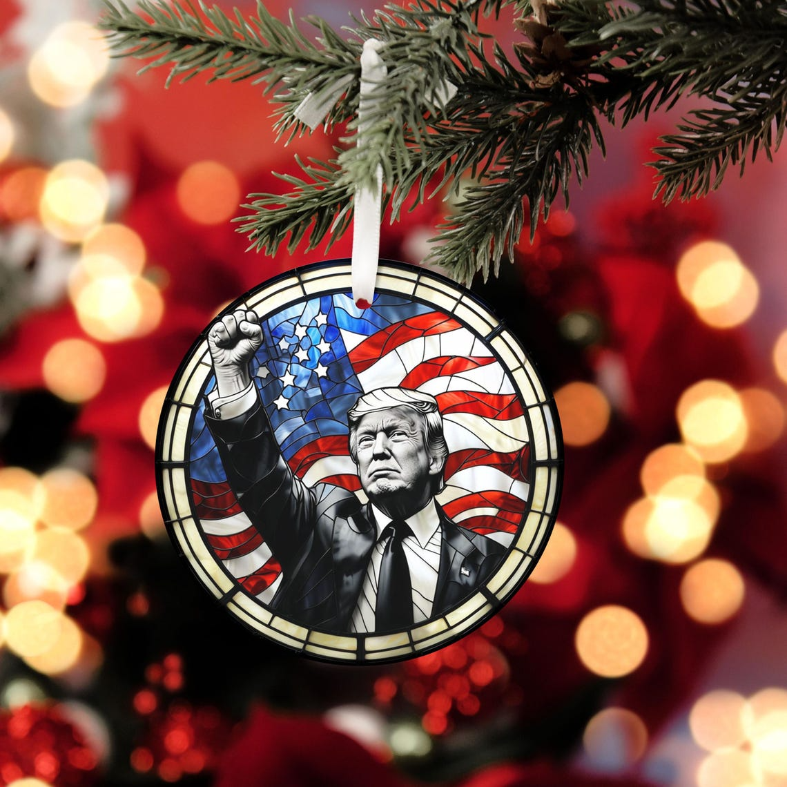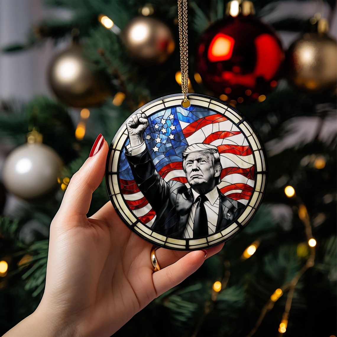 Trump2024 With Raised Fist Ceramic Ornament, Political Christmas Ornament