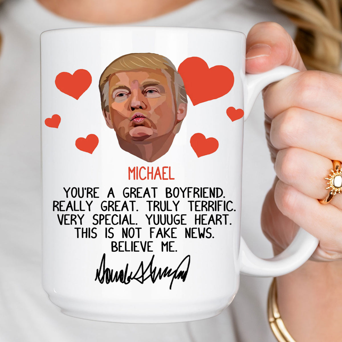 Discover the perfect blend of humor and affection with our "You're Great Husband Really Great" Funny Trump Coffee Mug. This unique mug makes an ideal Valentine’s gift for husbands, boyfriends, wives, or girlfriends who appreciate a good laugh. Crafted from high-quality materials, it features a playful design that showcases your love and appreciation. Whether it's for morning coffee or afternoon tea, this mug is sure to bring a smile to their face. Elevate your gifting game this Valentine’s Day with a present that’s both practical and hilarious! Perfect for any occasion, it’s a great way to celebrate your special someone.