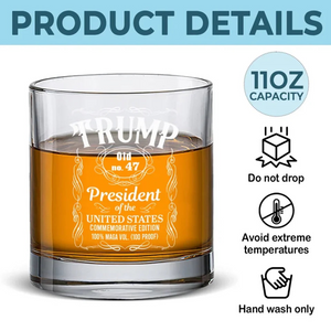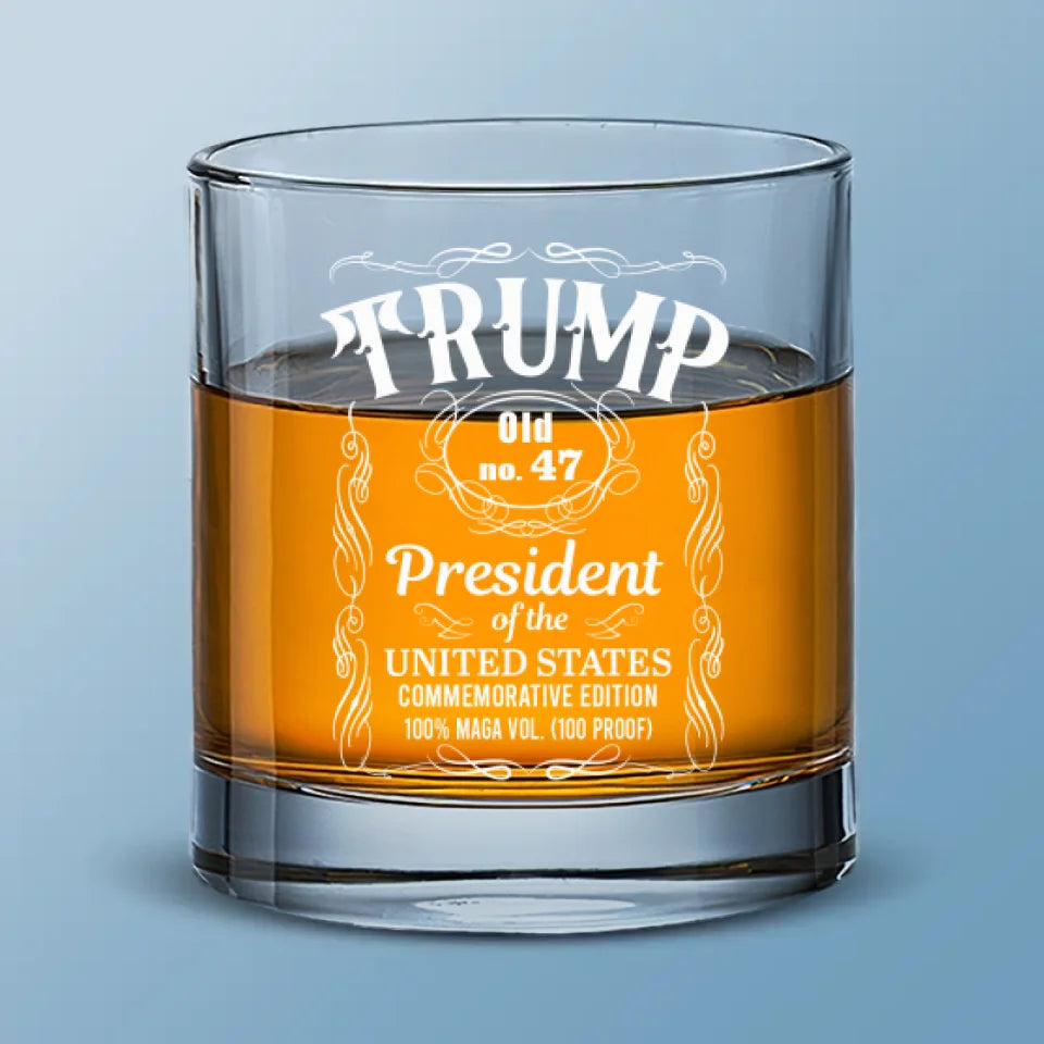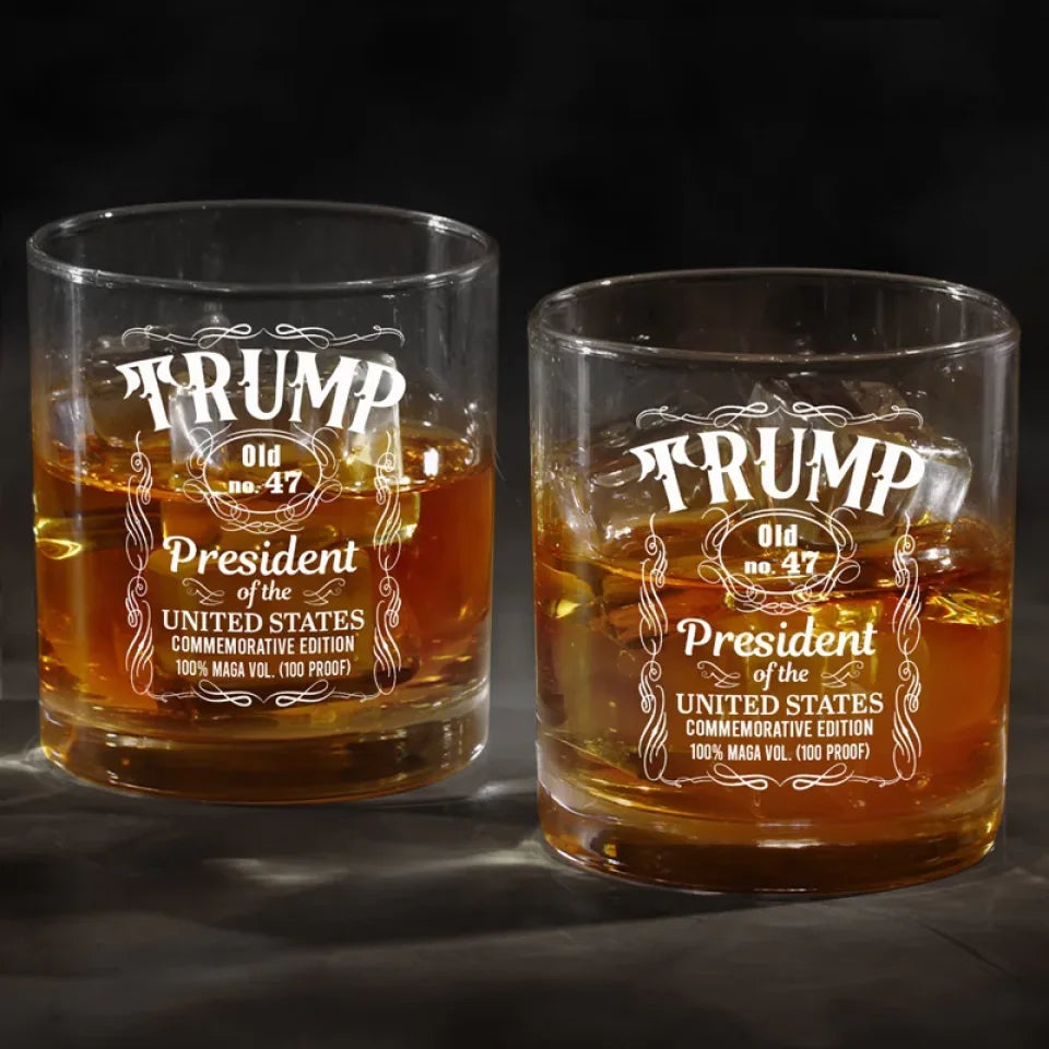 Trump47 US President 2024 Whiskey Glass, Trump President Wine Glass, Dad Christmas Gift