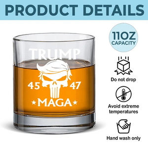 Trumpmaga 47th President Of The United States Whiskey Glass, Old Fashioned Glass, Dad Christmas Gifts