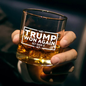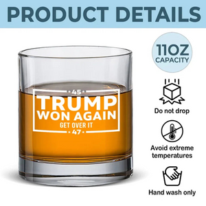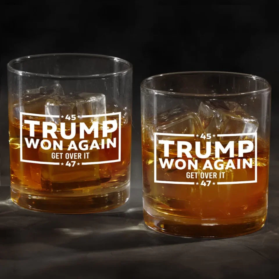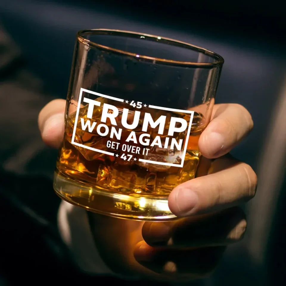 Trumpwon 47th US President Whiskey Glass, Get It Over Old Fashioned Glass, Patriotic Gifts