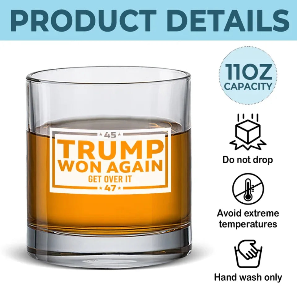 Trumpwon Get Over It Whiskey Glass, Trump2024 Wine Glasses, Presents For Dad