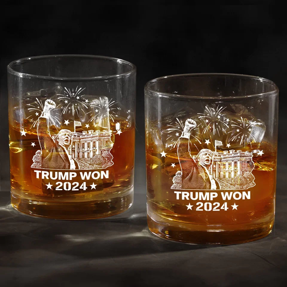 Trumpwon, We Won Whiskey Glass, MAGA2024 Old Fashioned Glass, Cool Christmas Gifts For Dad