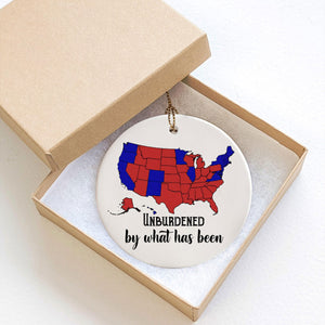Embrace the humor of the 2024 election with our "Unburdened by What Has Been" Ceramic Ornament featuring the Trump Won election map. This unique ornament combines wit and patriotism, making it a perfect gift for Trump supporters and collectors. Ideal for holiday decorating or as a conversation starter, this ornament adds a playful touch to your Christmas tree or festive decor. Celebrate the spirit of the election with this eye-catching piece that highlights Trump's victory while showcasing your support in a fun way. A must-have for any Trump fan!