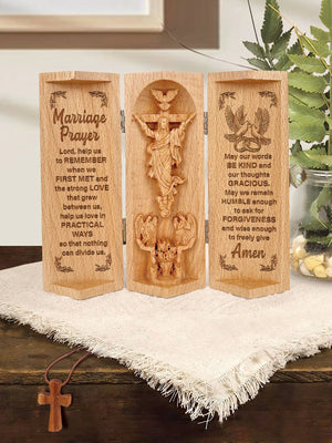Faith Wedding Marriage Prayer, Personalized Openable Wooden Cylinder Sculpture of Jesus Christ, Christian Gifts