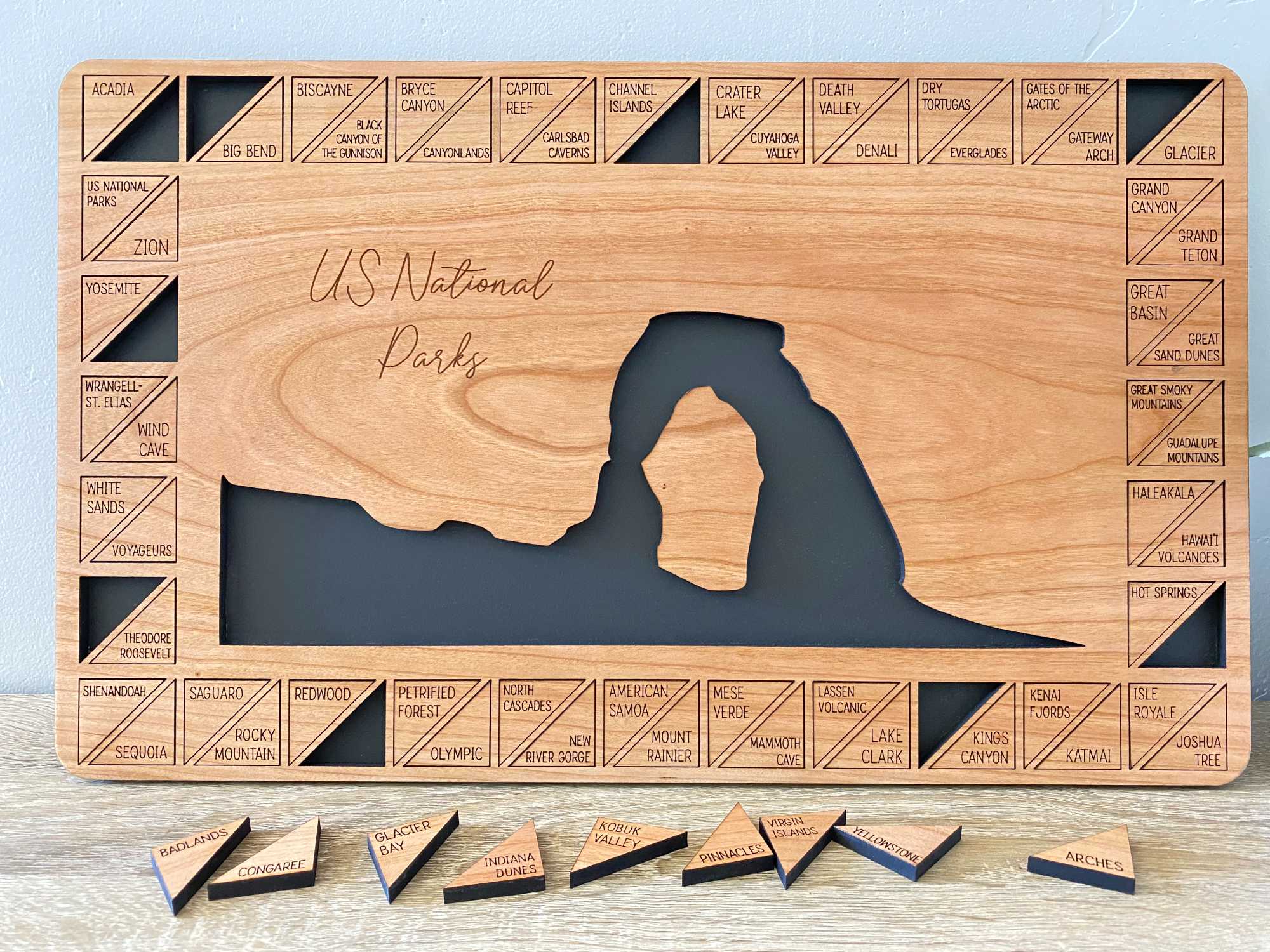 Perfect for nature lovers and explorers, it's an artistic way to display the national parks your family has visited.