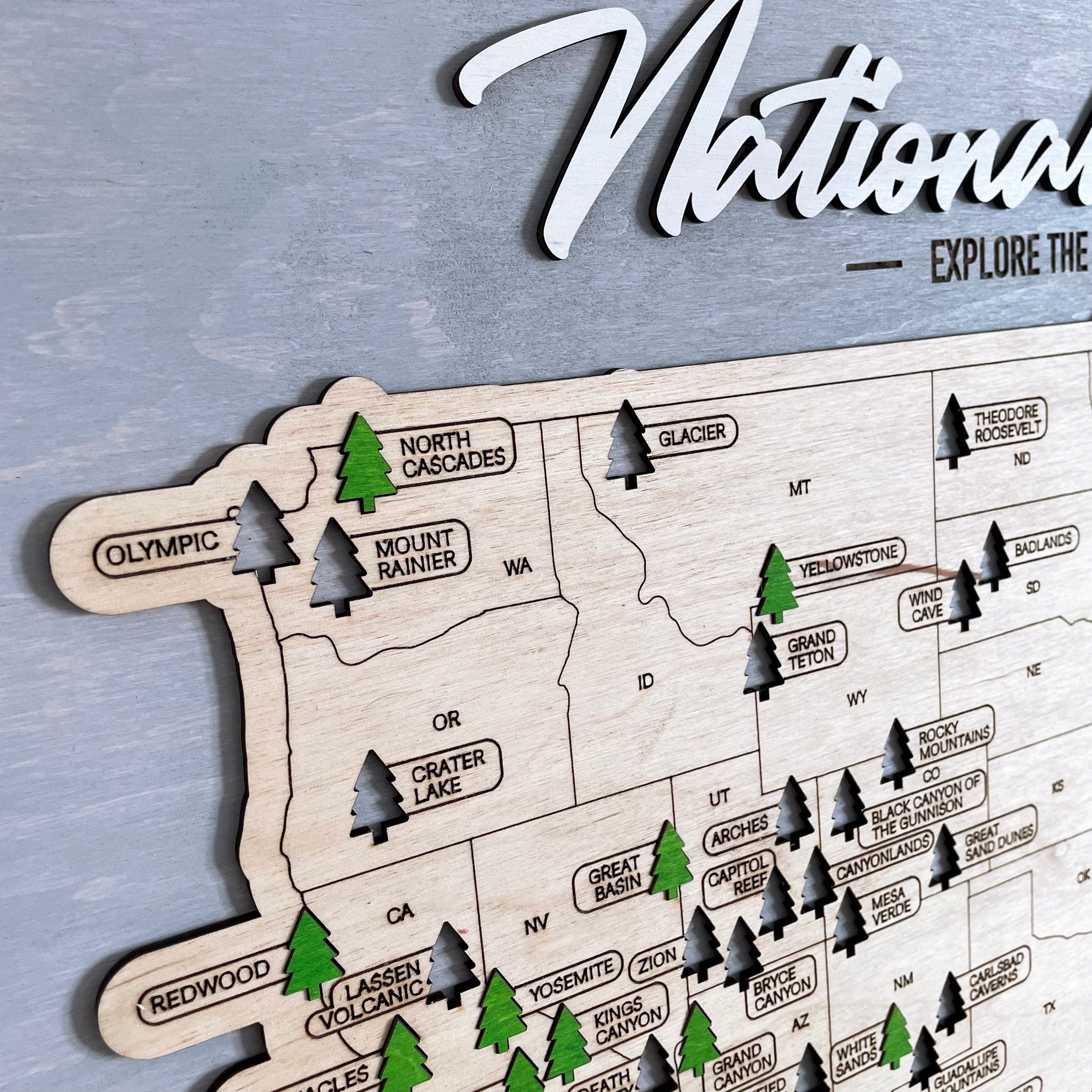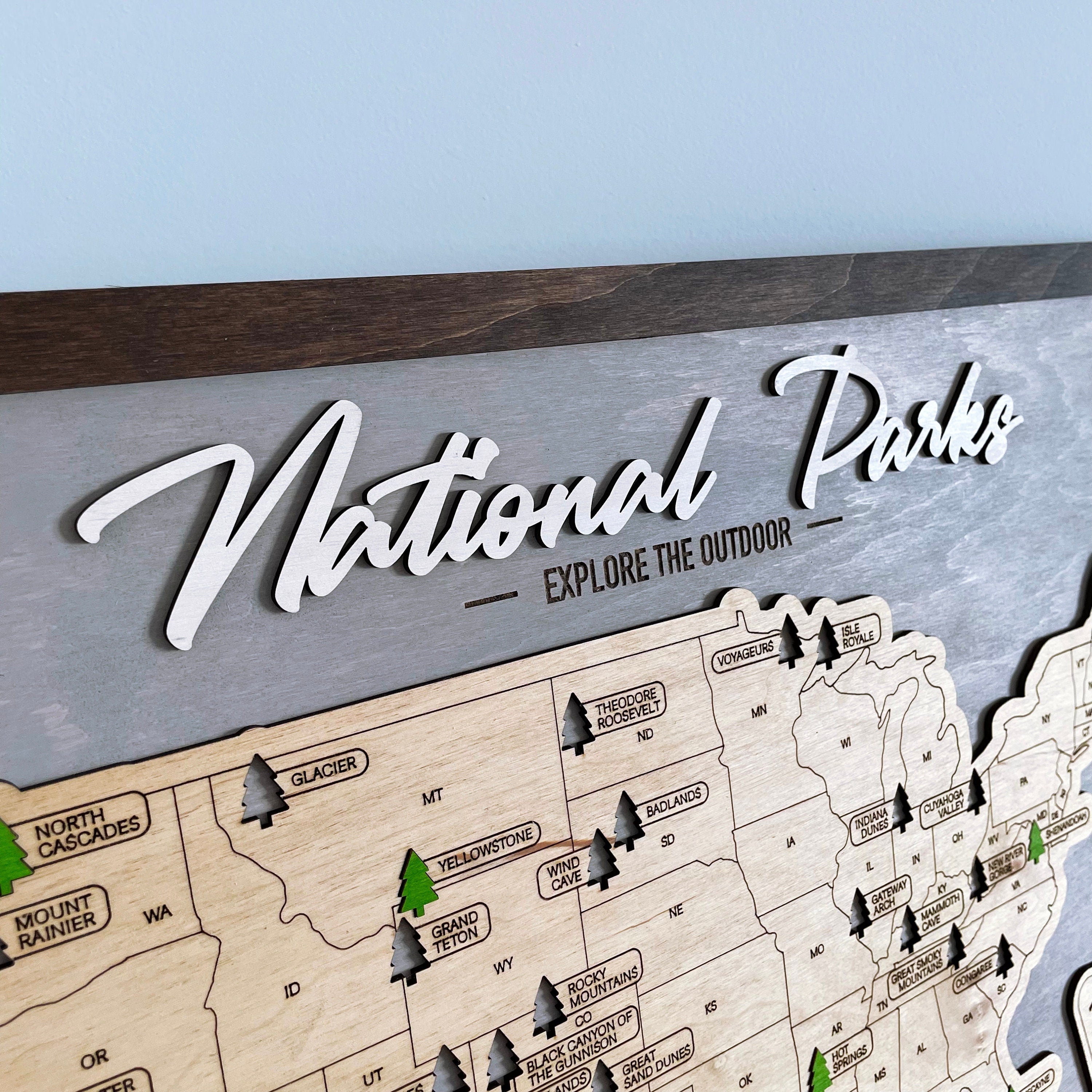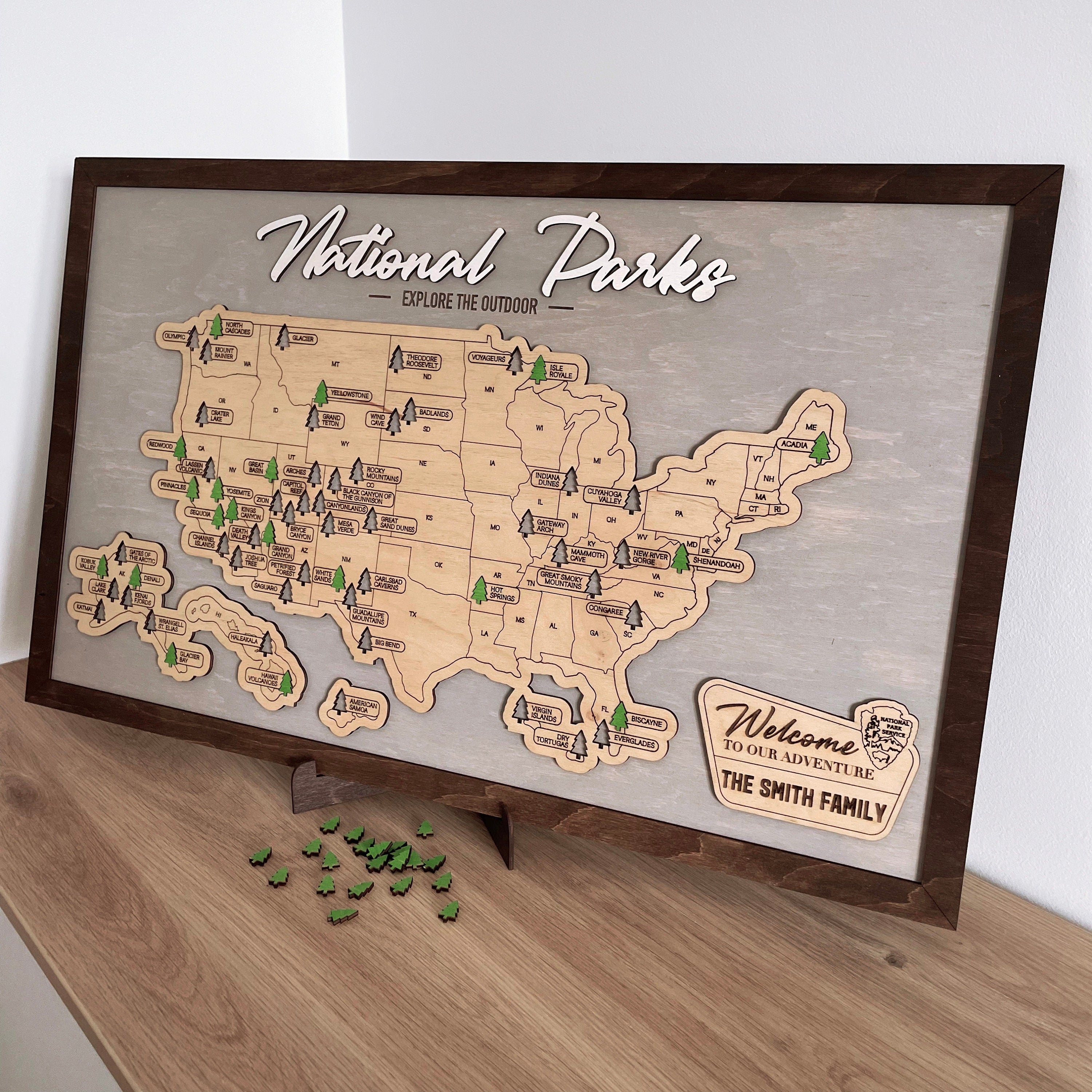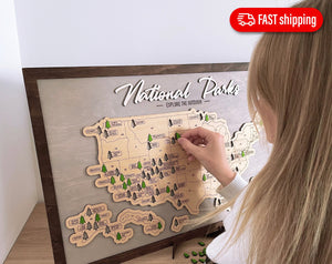 Perfect for nature lovers and explorers, it's an artistic way to display the national parks your family has visited.