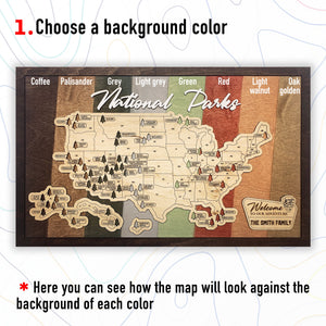 USA National Parks Travel Map, Custom National Park Road Trip Wooden Map Tracker