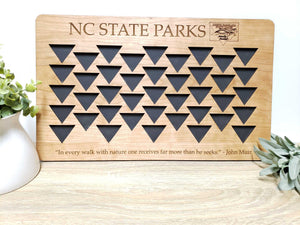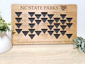 This beautifully crafted wooden tracker is a perfect gift for nature lovers and adventurers exploring North Carolina's stunning state parks. It serves as both a decorative piece and a functional tool, allowing you to mark off the parks you've visited.