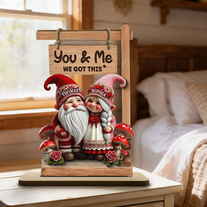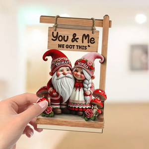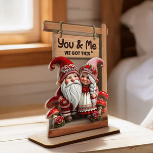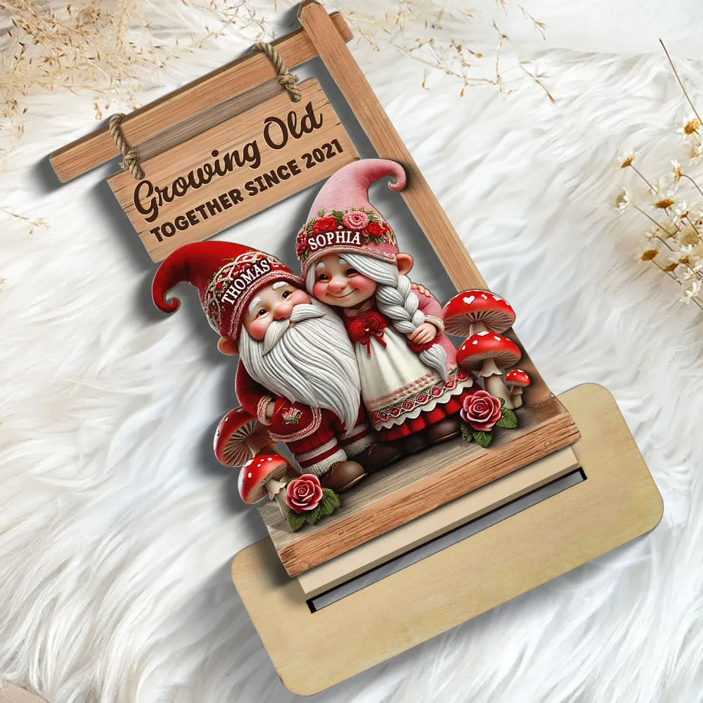 Valentine Theme Gnome Couple Growing Old Together 2-Layer Wooden Plaque, Personalized Valentines Gift
