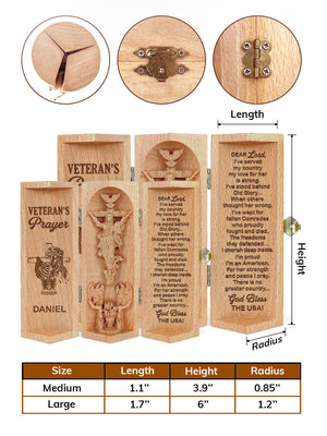 Veteran's Prayer, Personalized Openable Wooden Cylinder Sculpture of Jesus Christ, Christ Decor