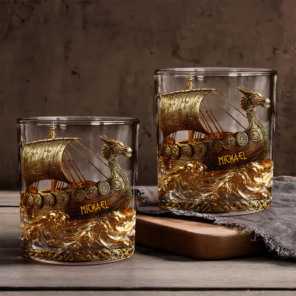 Viking Sail Custom Whiskey Glasses, Gift For Whiskey Lover, Viking Theme Custom Rocks Glasses
