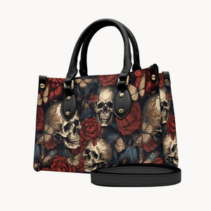 Vintage Rose Skull - Personalized Skull Leather Handbag - Boho Handbag - Leather Shoulder Bag