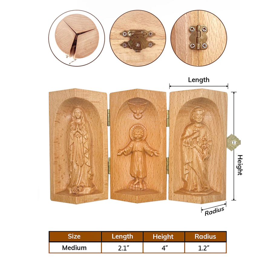 Virgin Mary, Infant Jesus And Saint Joseph Openable Wood Cylinder Sculpture Of Jesus Christ, Christian Merchandise, Christian Gifts