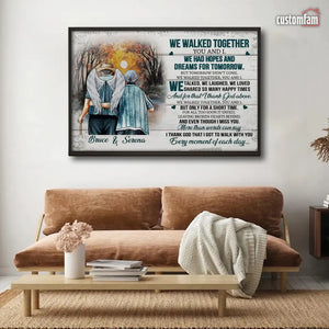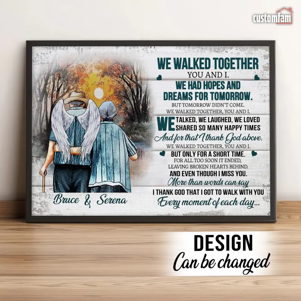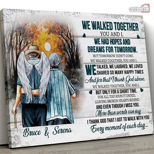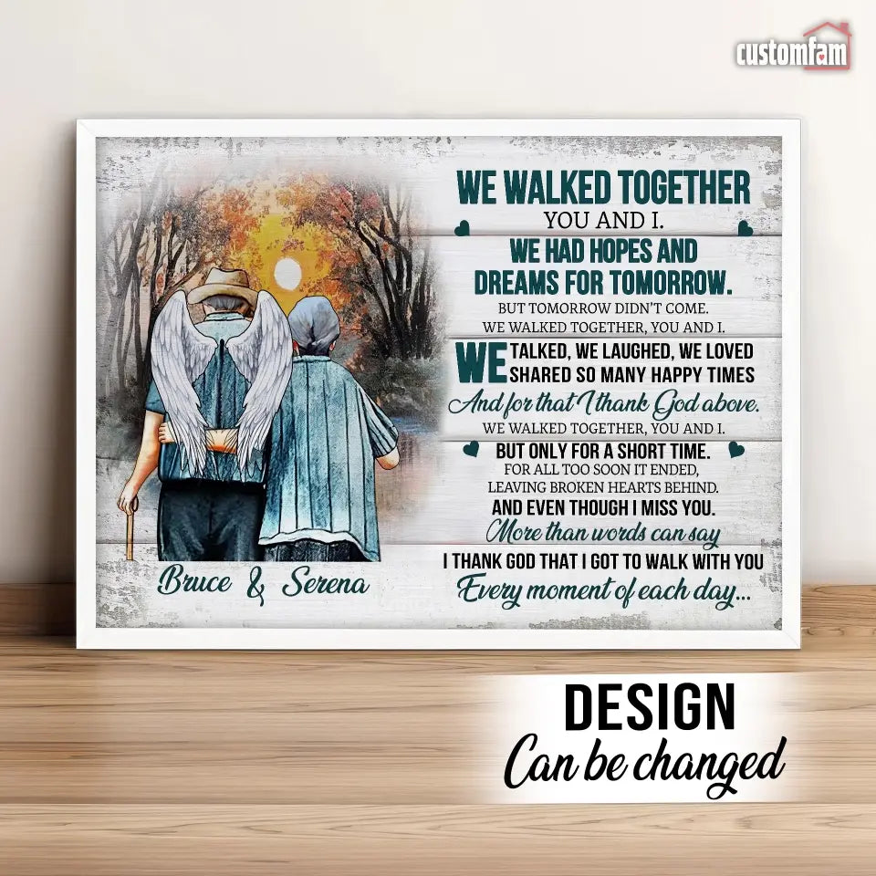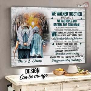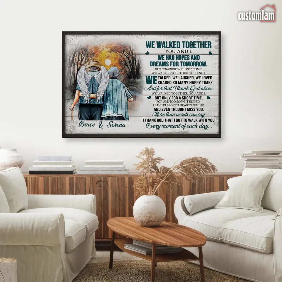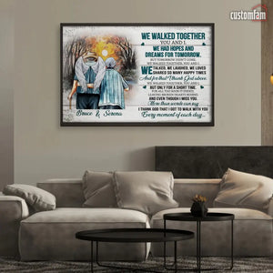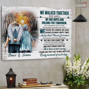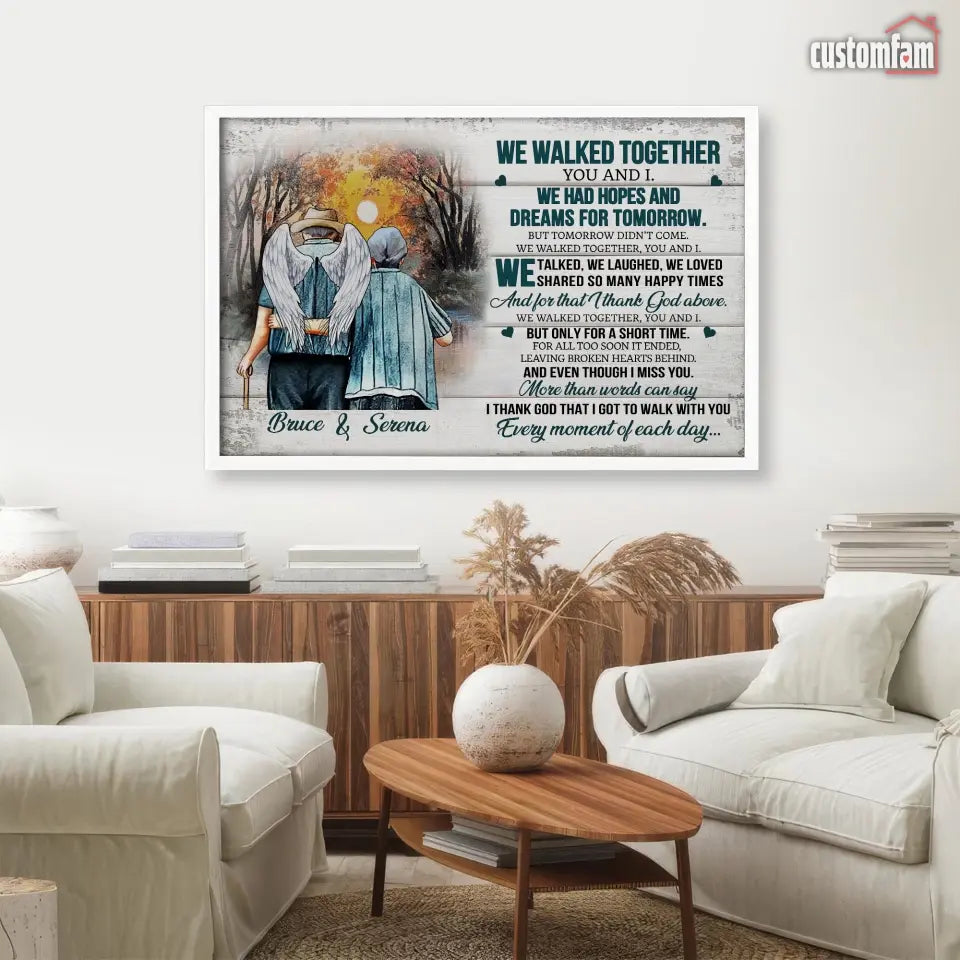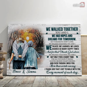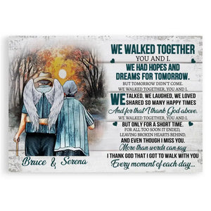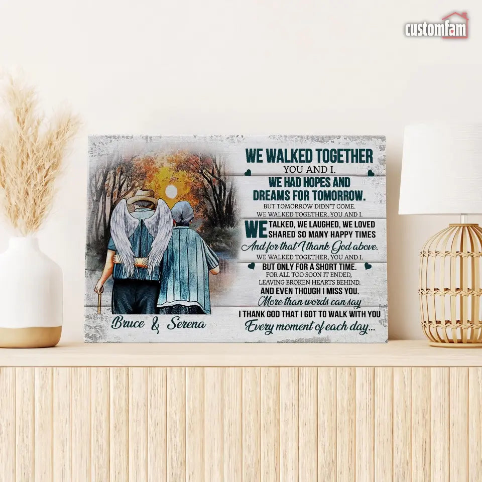 We Walked Together You And I Anniversary Canvas Prints, Custom Name Couple Gifts, Old Loving Couple, Wedding Anniversary Gifts, Loss Husband, Sympathy Gifts, Memorial Loss Of Husband Gift