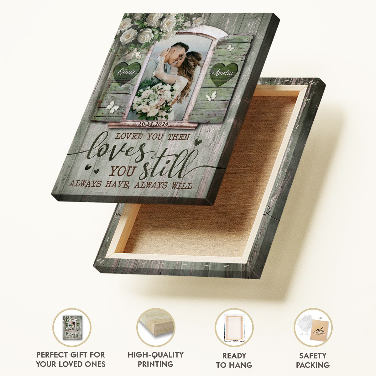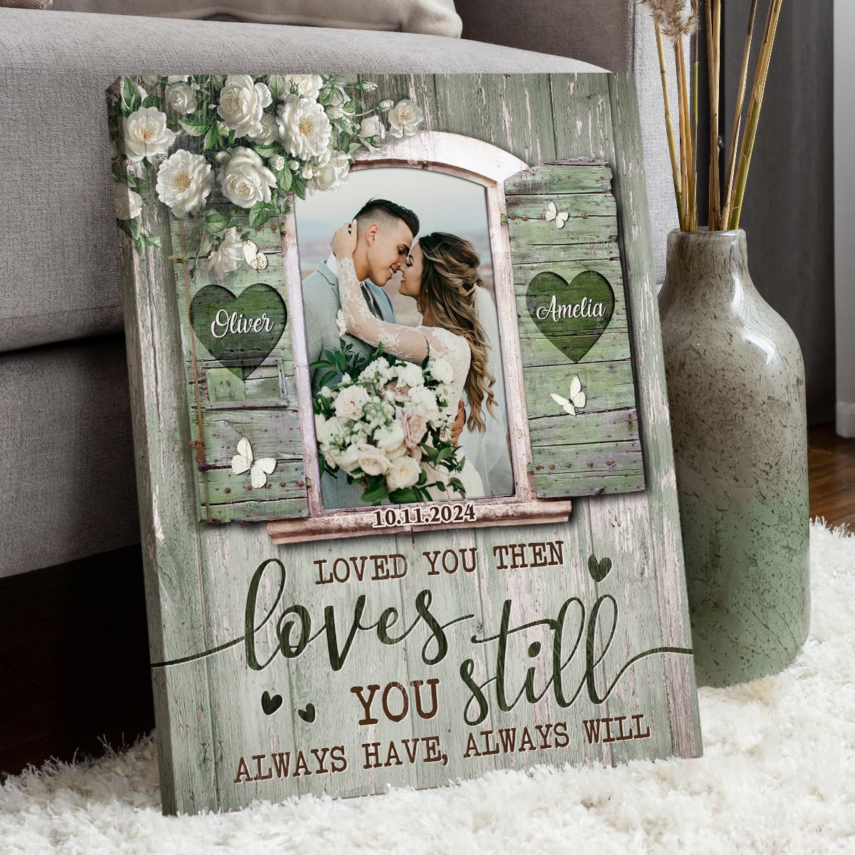 Celebrate love and commitment with this Wedding Couple Canvas Wall Art, a stunning piece that beautifully captures the essence of your relationship. Whether you're commemorating a recent wedding, a milestone anniversary, or simply cherishing your bond, this personalized canvas will add a meaningful touch to any home. With customizable options for names, wedding dates, or heartfelt messages, this artwork makes the perfect gift for newlyweds or couples celebrating years of togetherness.