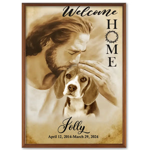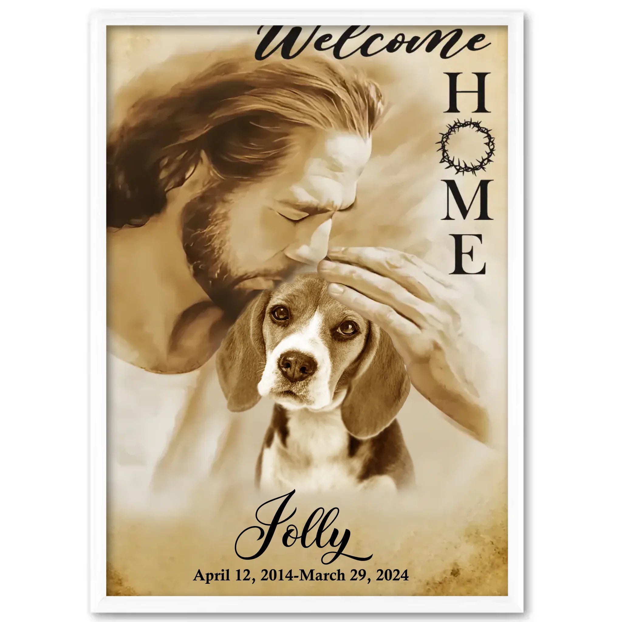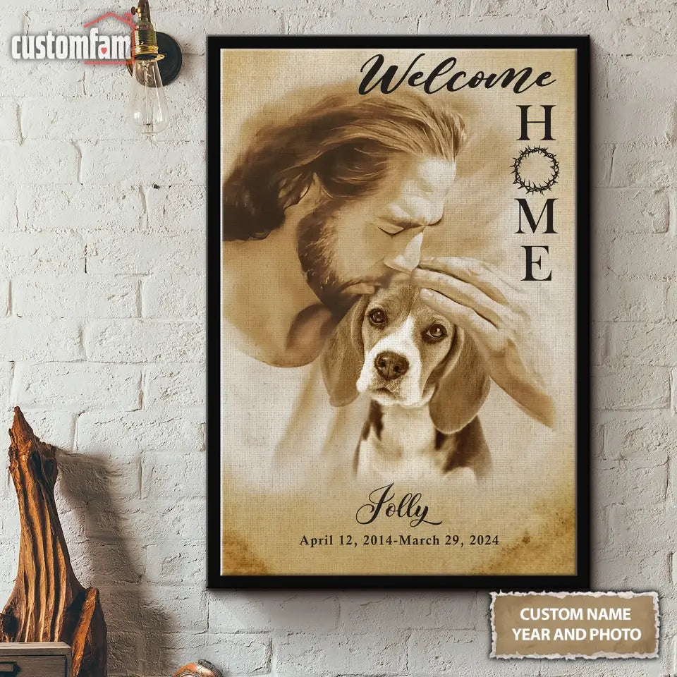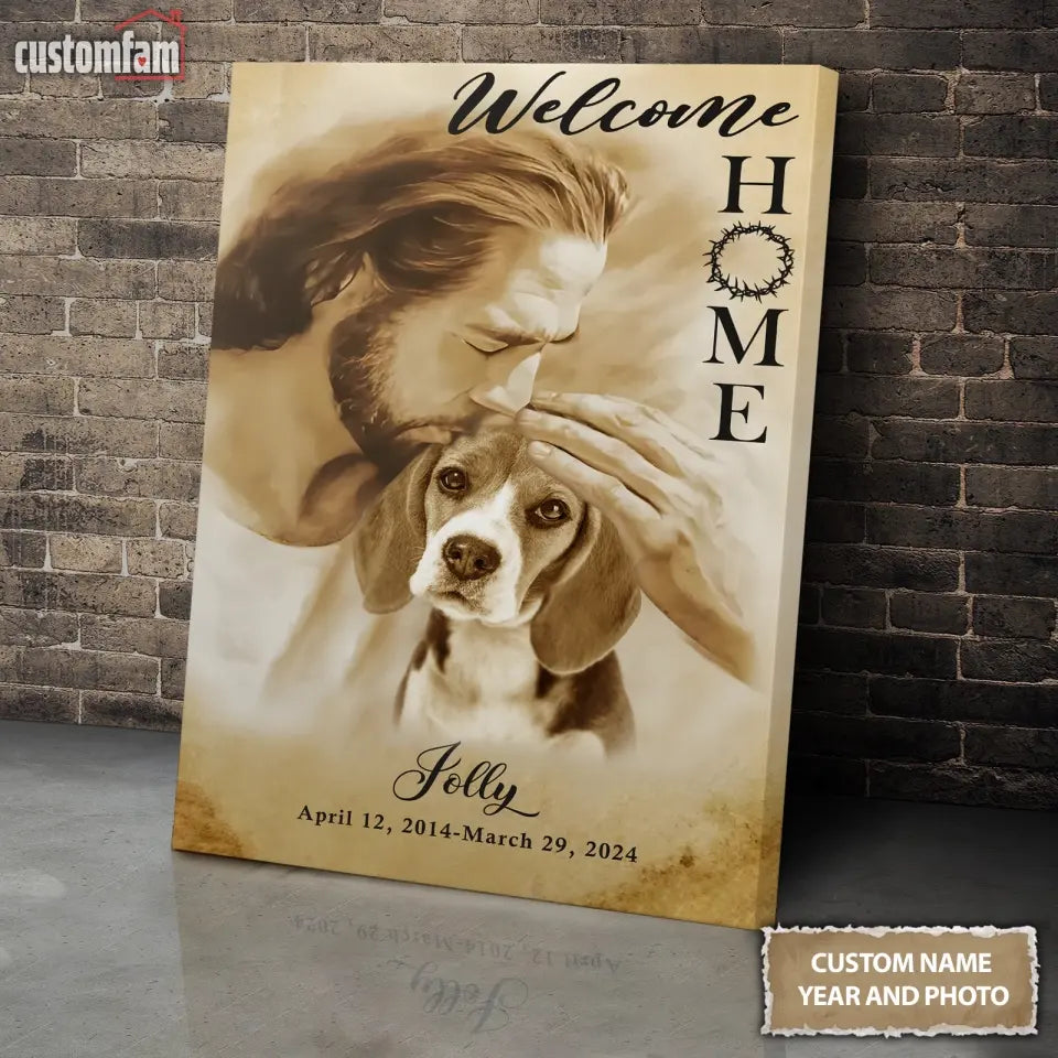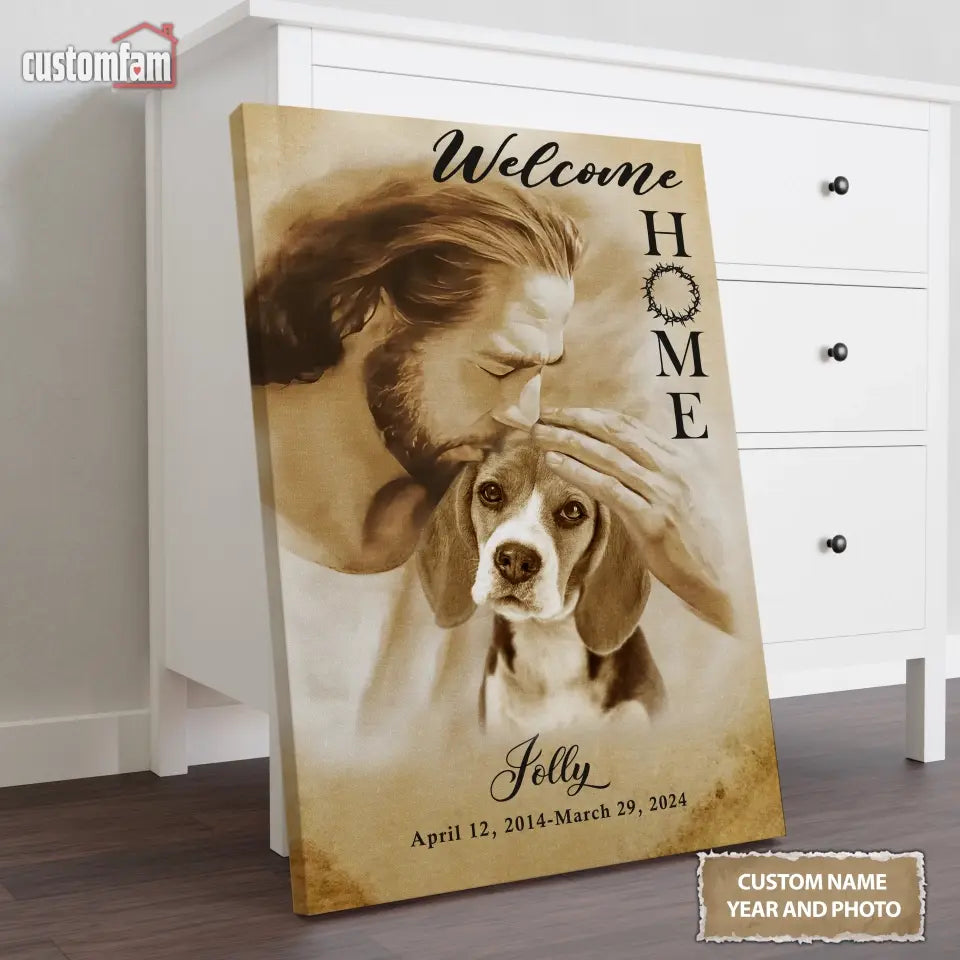 Welcome Home Custom Photo Canvas Prints, Jesus Wall Art, Dog Memorial Gifts