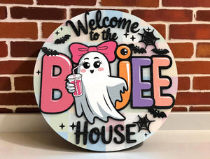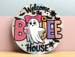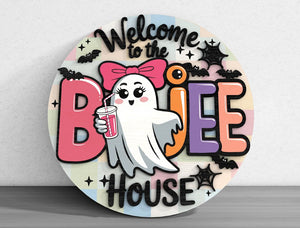 Welcome To The Boujee House Cute Ghost Halloween Door Hanger, Halloween Yard Decorations