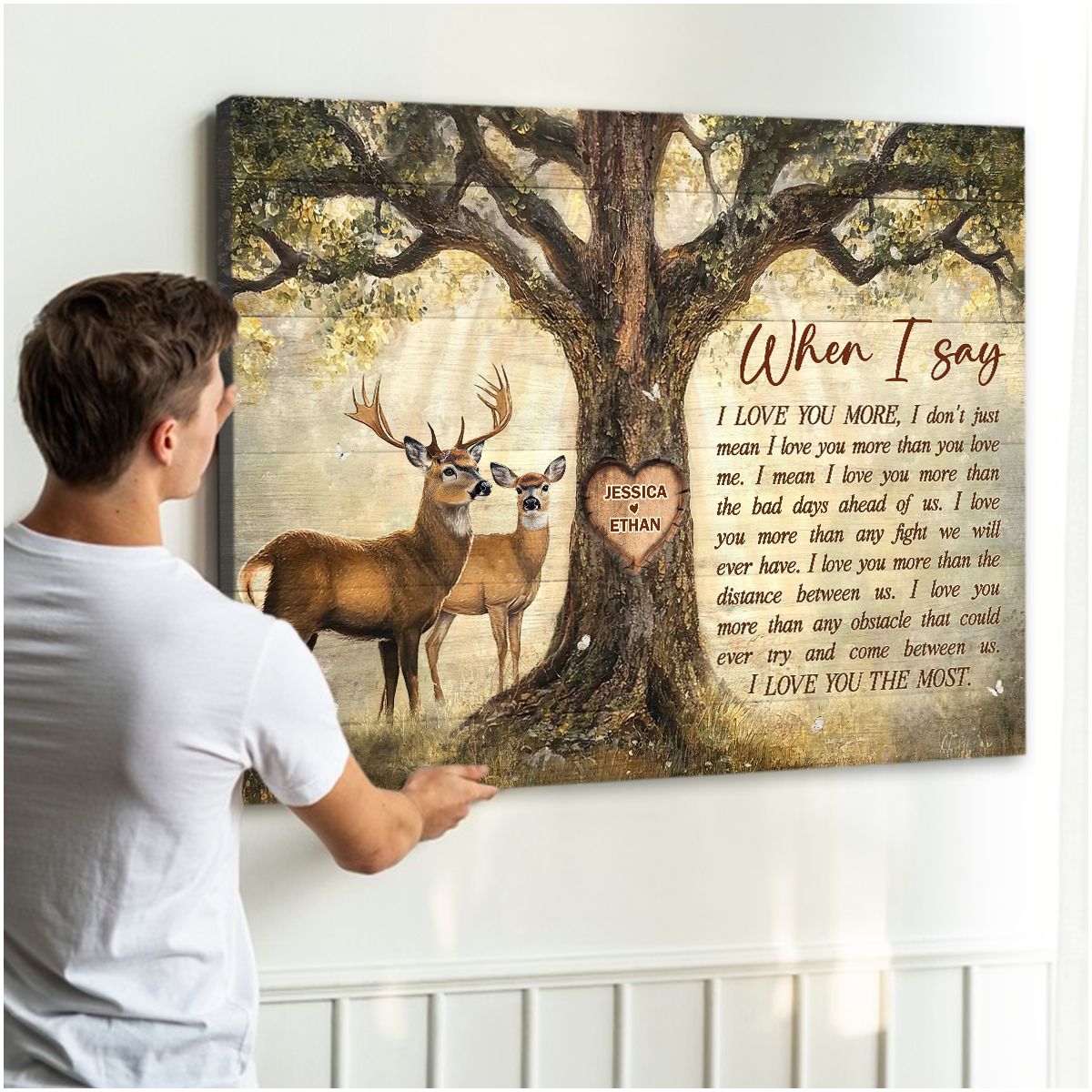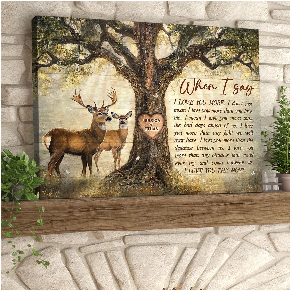 When I Say I Love You More Canvas Print Wall Art, Deer Couple Canvas Prints, Couple Valentines Gift