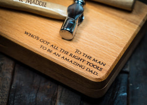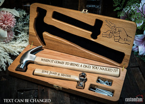 - Personalized hammers for a lifetime of memories: Receive a personalized claw hammer for dad, ready for tough family jobs, and a miniature safe hammer for children, designed with a rounded head for safety while allowing them to mimic their greatest heroes.