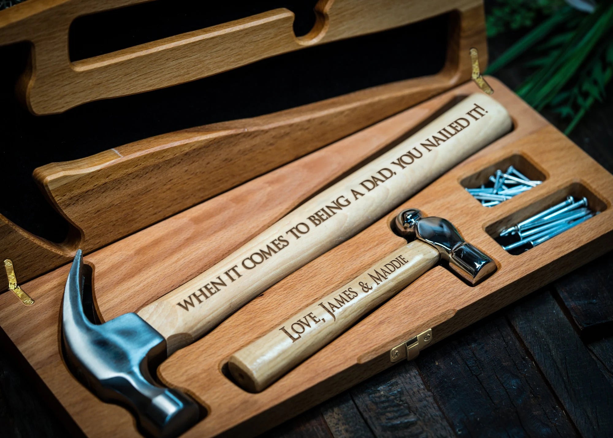 - Purposeful presentation in elegance: The set is elegantly presented in a oak wood gift box lined with velvet, complete with nails and customizable engraving options to make your gift truly unique. Engrave your special messages on each hammer to reflect the essence of your unique relationship.