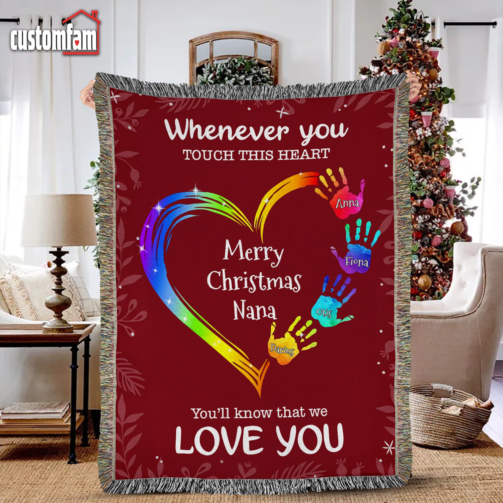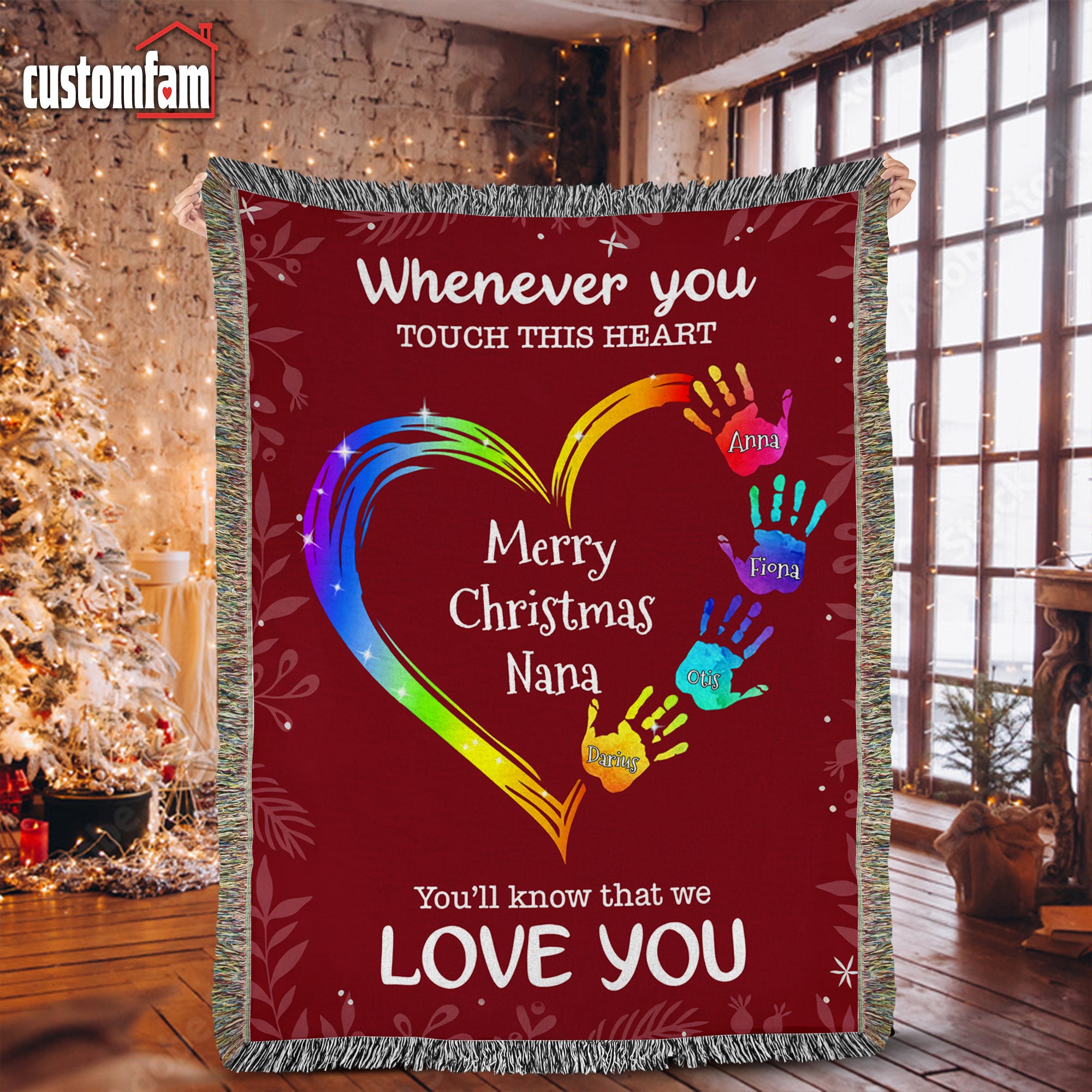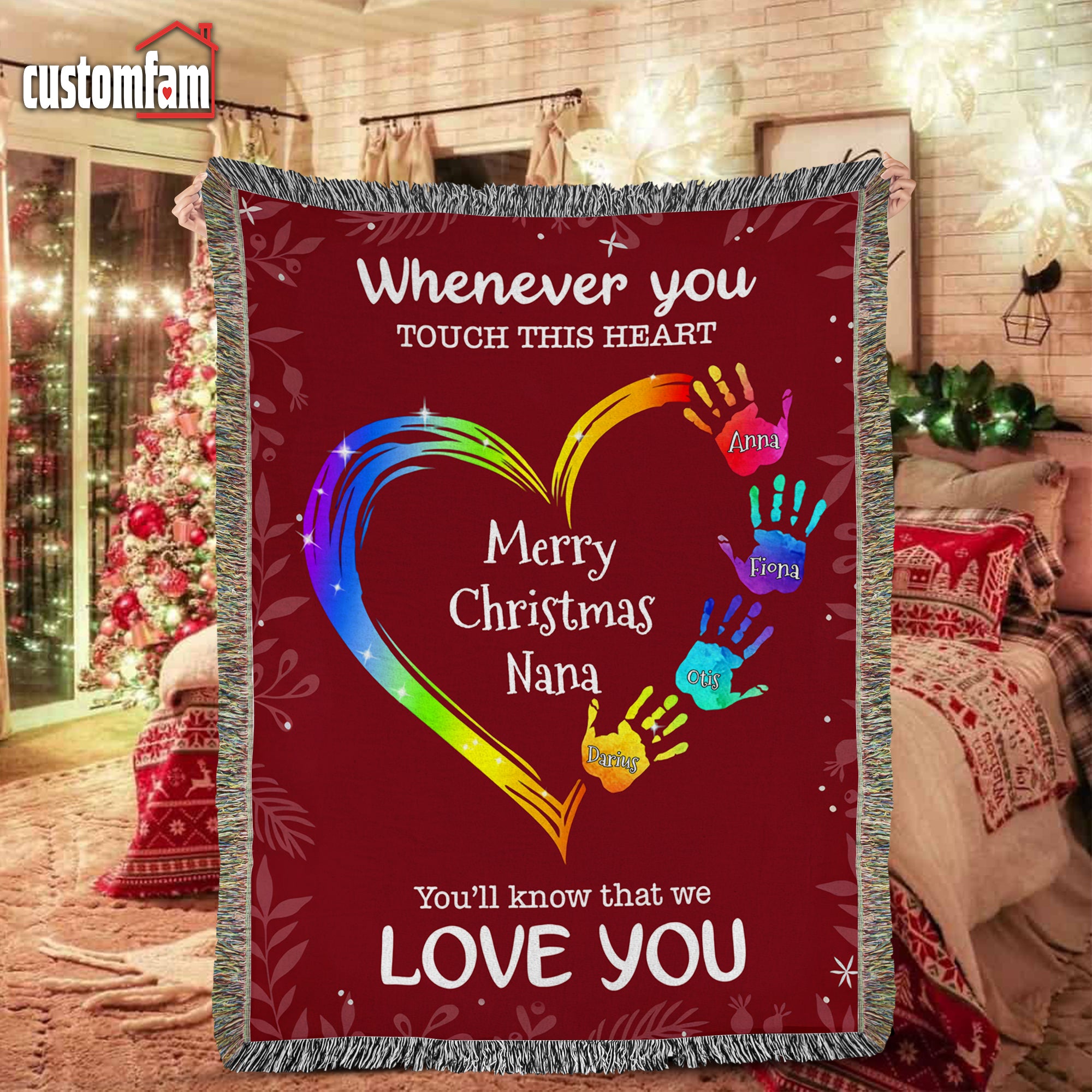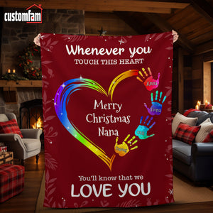 Whenever You Touch This Heart Christmas Woven Blanket, Fleece Blanket, Gift For Grandma Nana