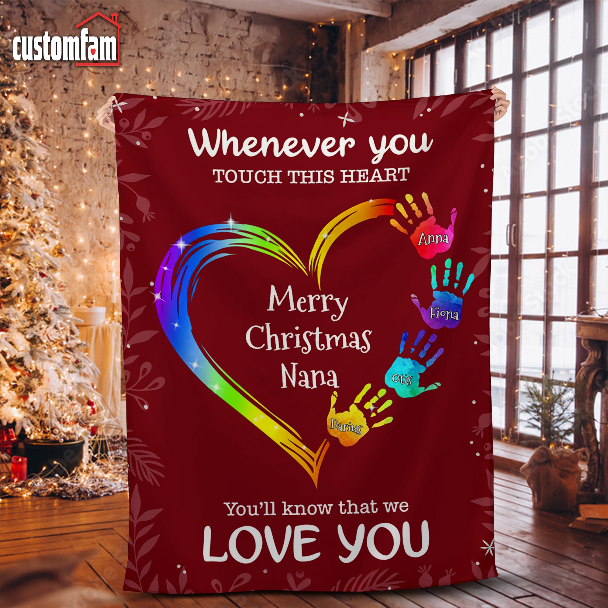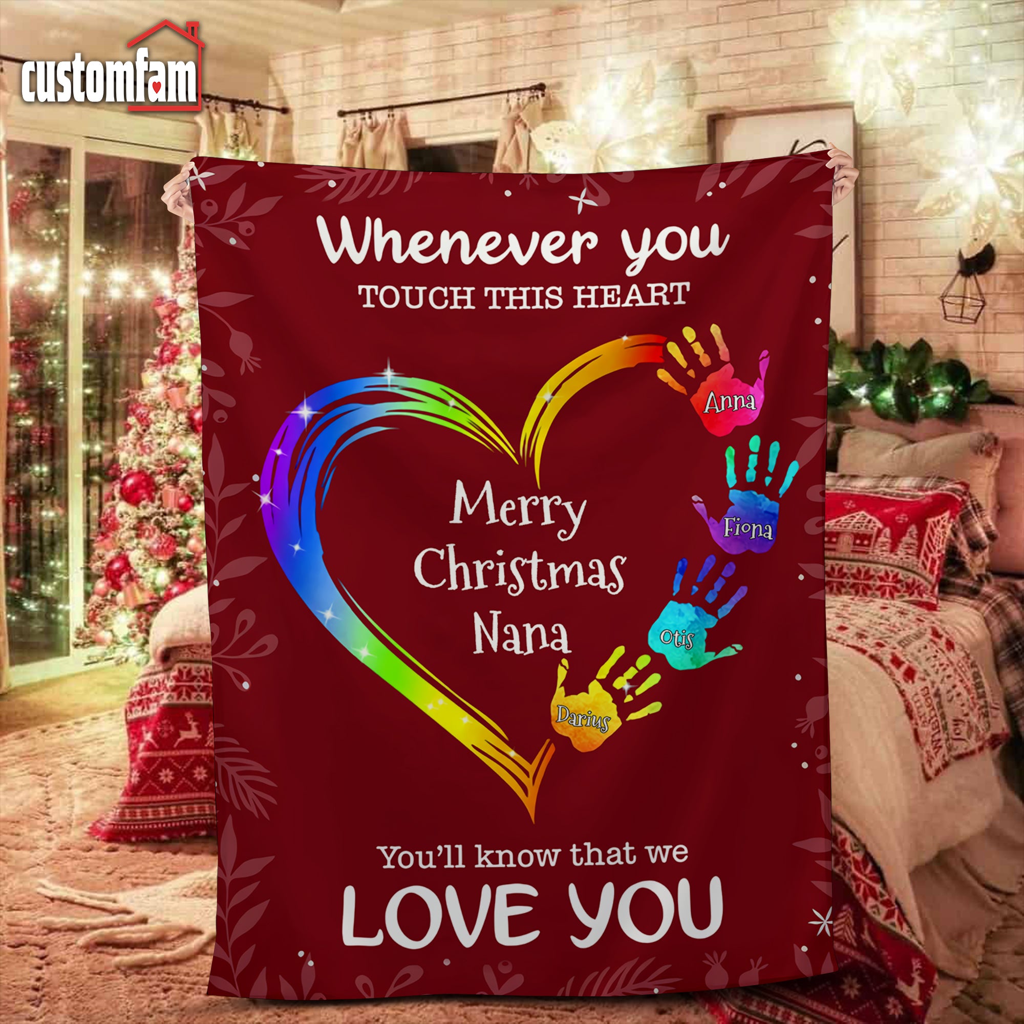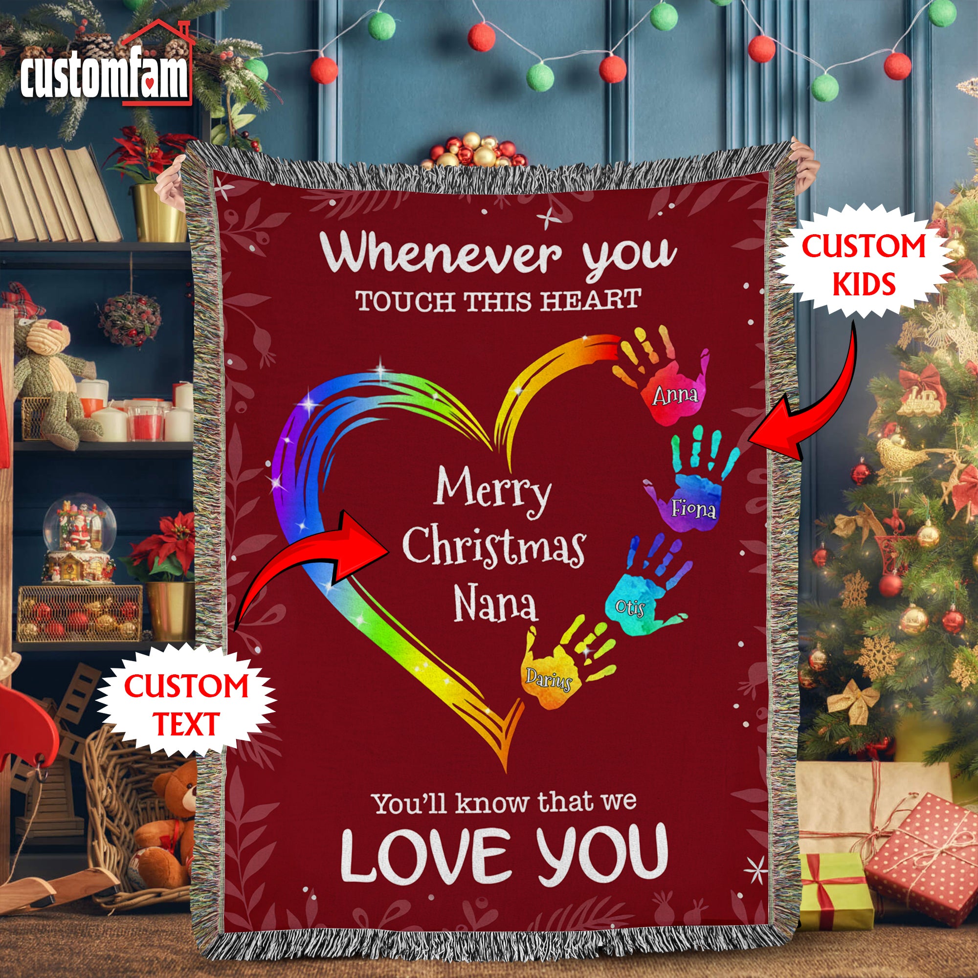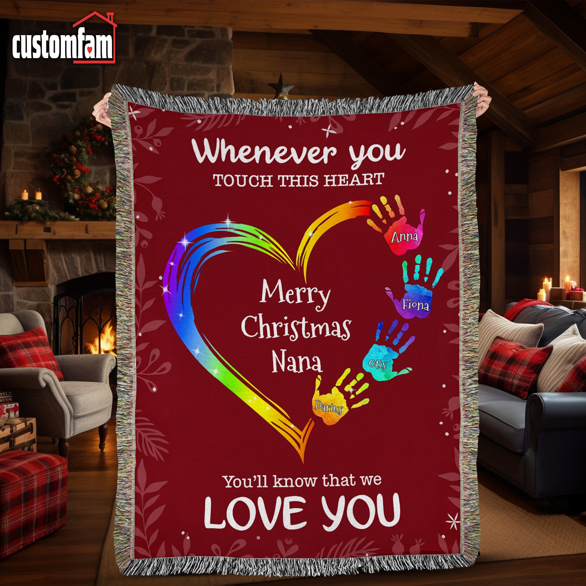 Whenever You Touch This Heart Christmas Woven Blanket, Fleece Blanket, Gift For Grandma Nana